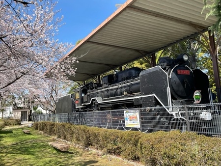 手原駅から徒歩すぐ、手原稲荷神社の横にあるSL公園は、知る人ぞ知る憩いのスポット。園内には蒸気機関車(D51形)が静かに保存展示され、どこか懐かしい時間が流れます。満開時には桜のやわらかな薄ピンクと鋼鉄の漆黒とのコントラストが際立ち、思わずカメラを向けたくなる風景に。