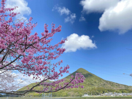 大井川沿いに広がる公園。多様な桜が遊歩道を彩り、三上山(近江富士)との共演も楽しめます。この桜の里には、平安時代から数多くの有名人が訪れ、和歌が何種も残されています。