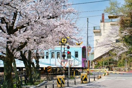 観光ガイドにはまず載らない穴場。路面を走る京阪電車と桜を同時に収められる、知る人ぞ知る撮り鉄御用達の撮影スポットです。滋賀らしい日常の春景色が楽しめます。