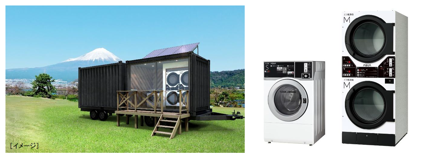 アクア株式会社(本社:東京都中央区、代表取締役社長 兼 CEO:杜 鏡国、以下当社)は、株式会社Wash Peaks(本社:山梨県甲府市、代表取締役 宮澤 昌樹)が開発した「災害備蓄ランドリー®」にINNFRA株式会社(本社:山梨県甲府市、代表取締役 川島 壮史)が開発した可動型水循環ユニット「INNFRA Base」を搭載したオフグリッド型・コインランドリー、「Re:フレッシュランドリー 道の駅富士川店」にAQUAのコインランドリー機器が導入されたことをお知らせいたします。「Re:フレッシュランドリー 道の駅富士川店」は、2026年3月6日(金)より山梨県内の防災道の駅「道の駅富士川」で営業を開始し、運営は株式会社フーマイスターエレクトロニクス(本社:東京都千代田区、代表取締役 武石 将樹)が行います。