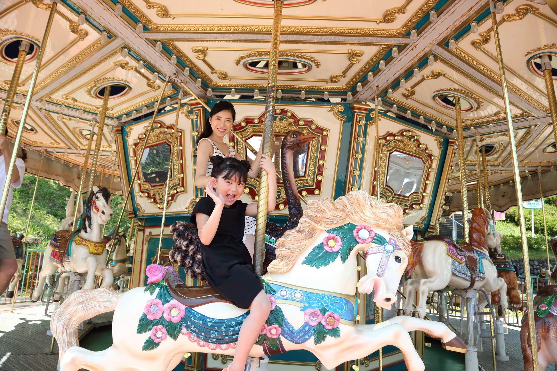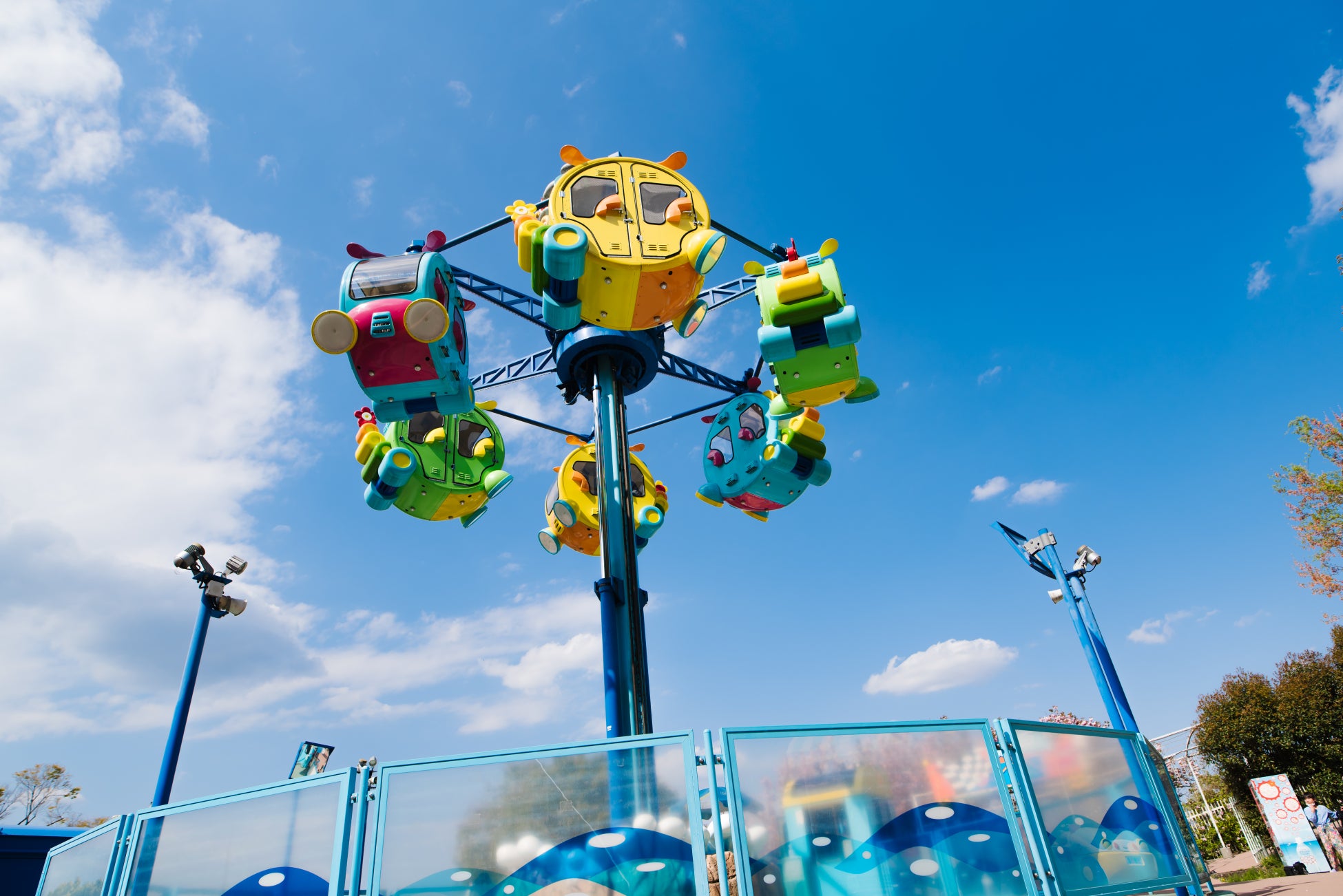 子様から大人まで楽しめるアトラクションが充実した自然いっぱいの屋外遊園地エリア。