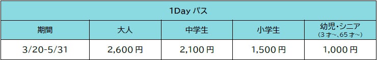 ●ご入園には、「来園日指定チケット(1Dayパス)」が必要です。事前に電子チケットをご購入いただくか、お近くのコンビニエンスストアでお買い求めください。