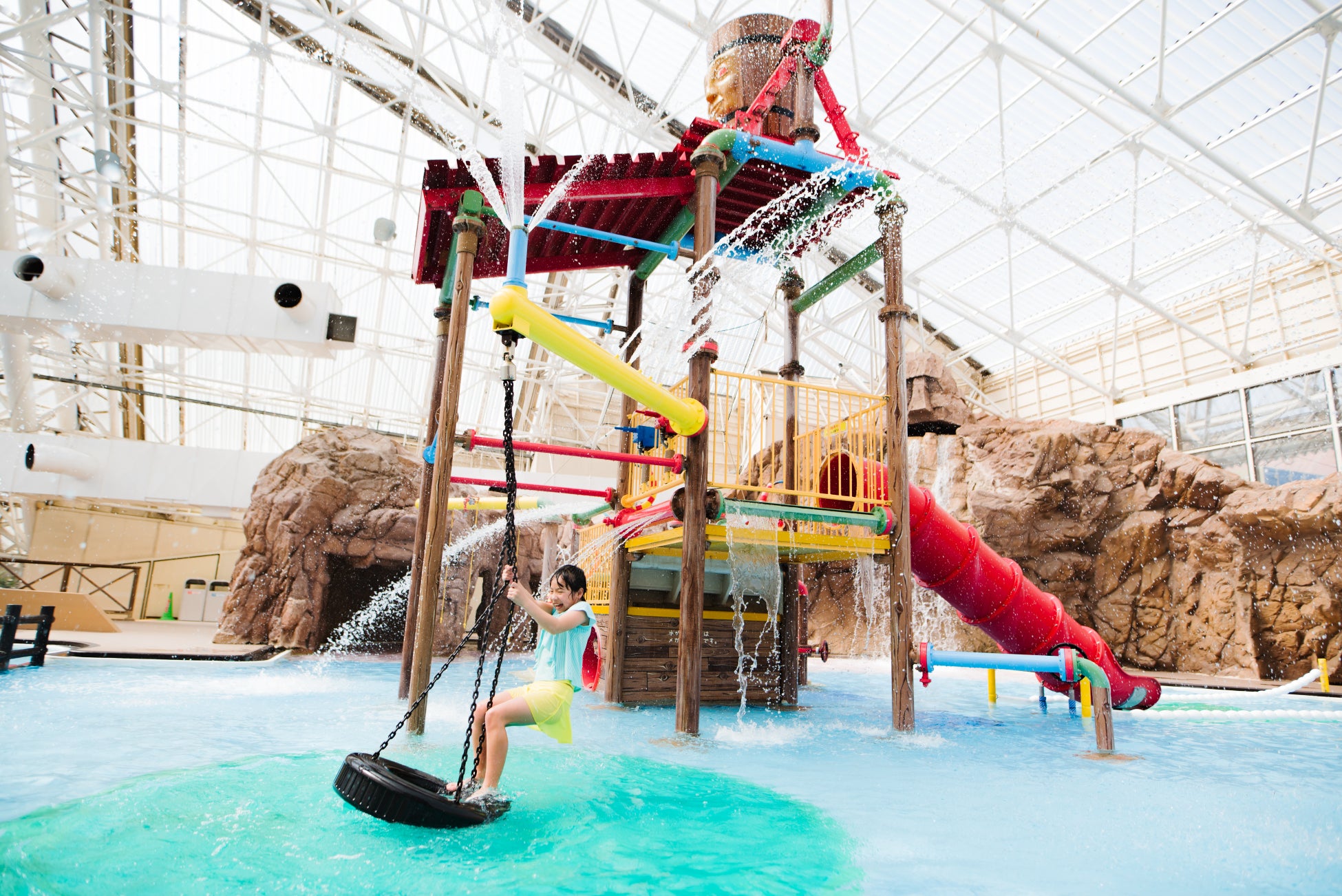 リゾート感あふれるアドベンチャードームは雨が降っても楽しめる大迫力の屋内プールエリア。