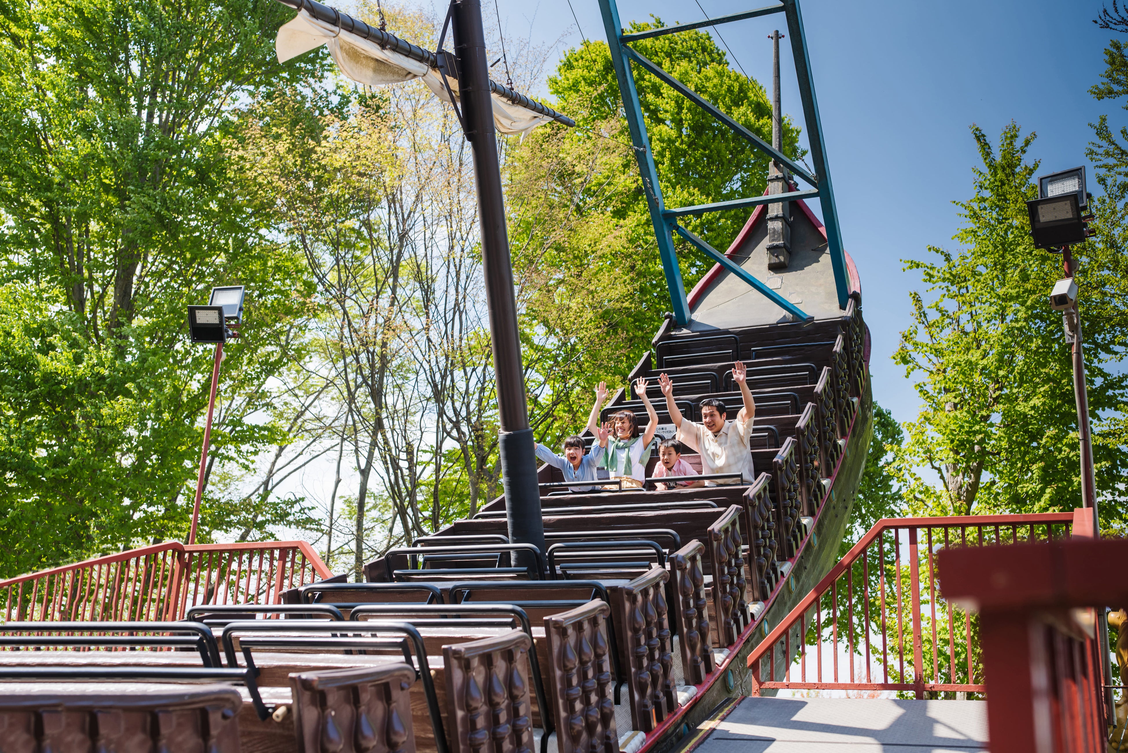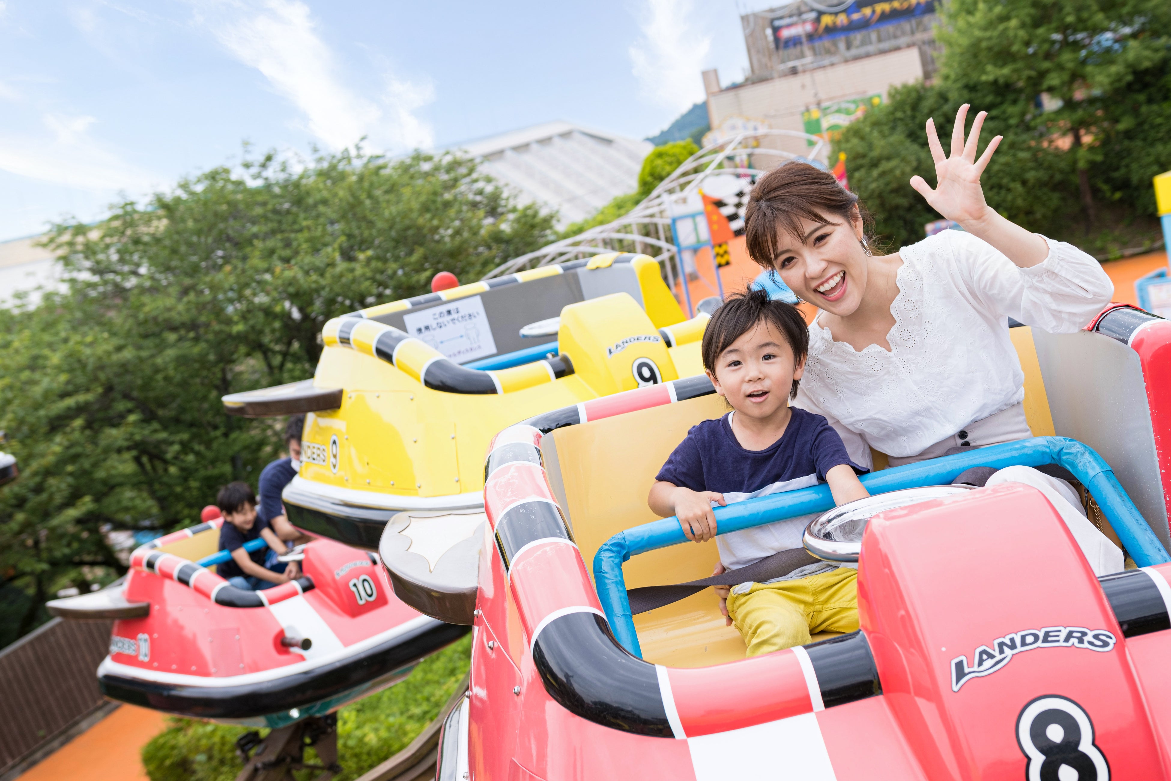子様から大人まで楽しめるアトラクションが充実した自然いっぱいの屋外遊園地エリア。