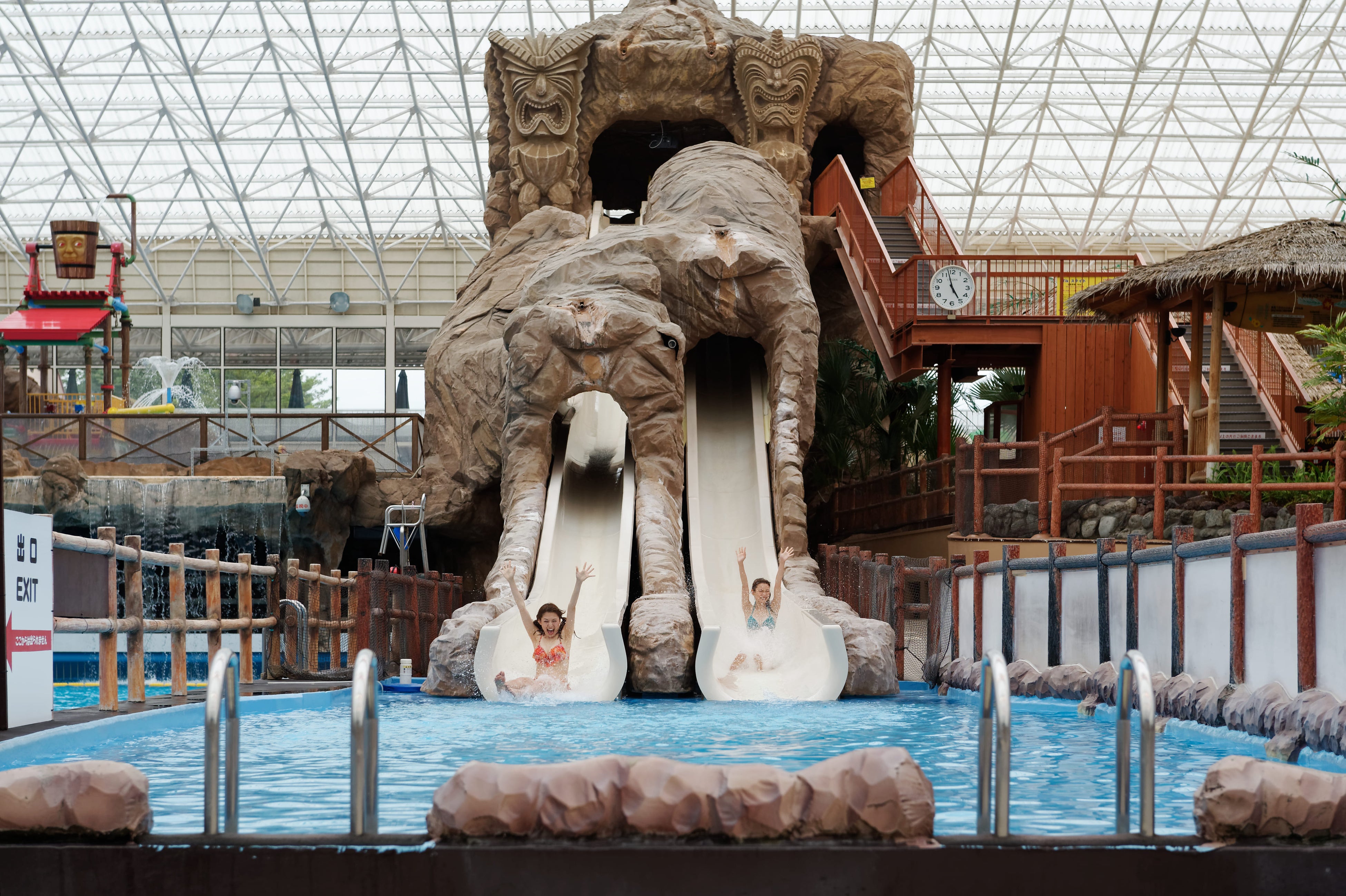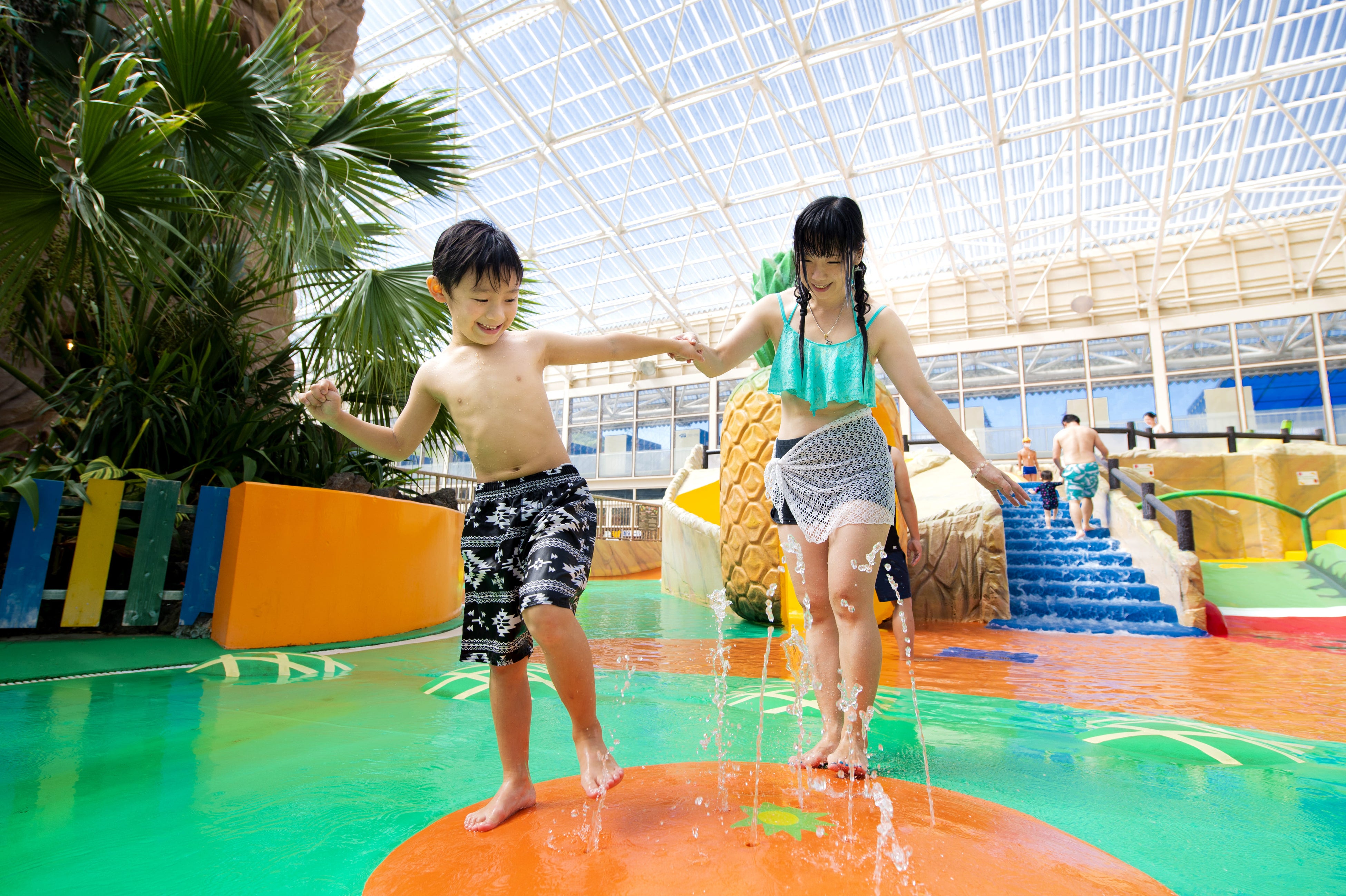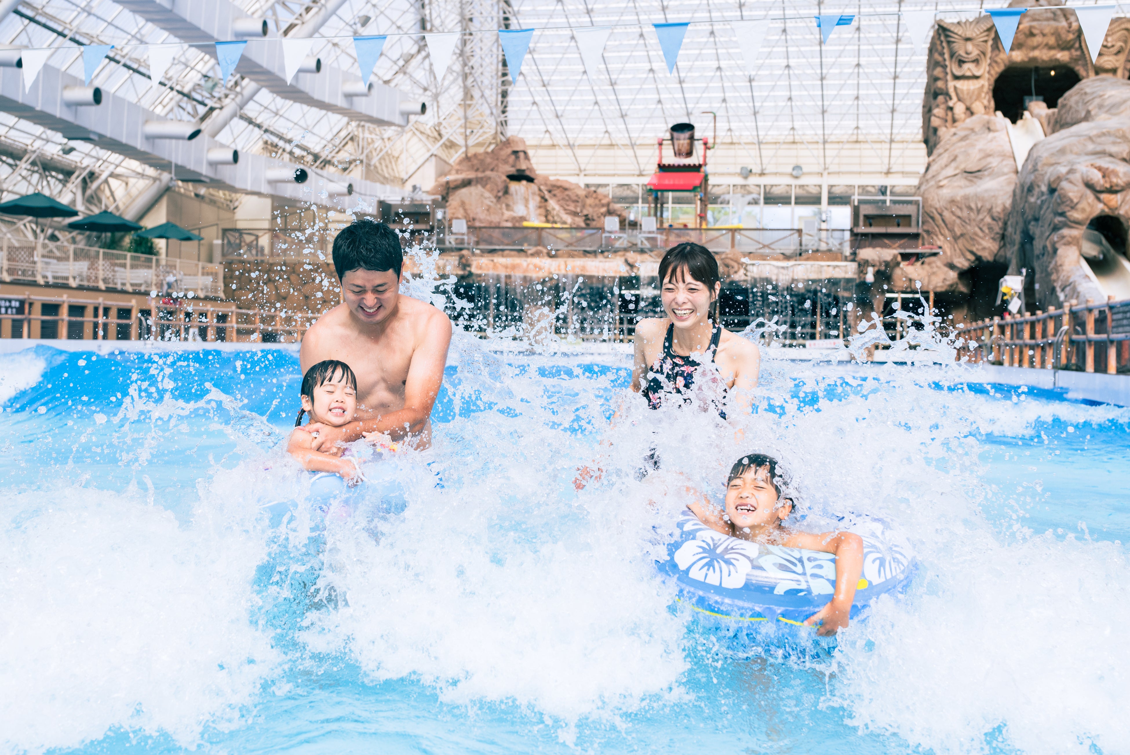 リゾート感あふれるアドベンチャードームは雨が降っても楽しめる大迫力の屋内プールエリア。