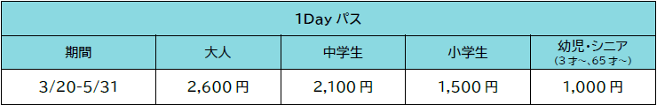 ●ご入園には、「来園日指定チケット(1Dayパス)」が必要です。事前に電子チケットをご購入いただくか、お近くのコンビニエンスストアでお買い求めください。
