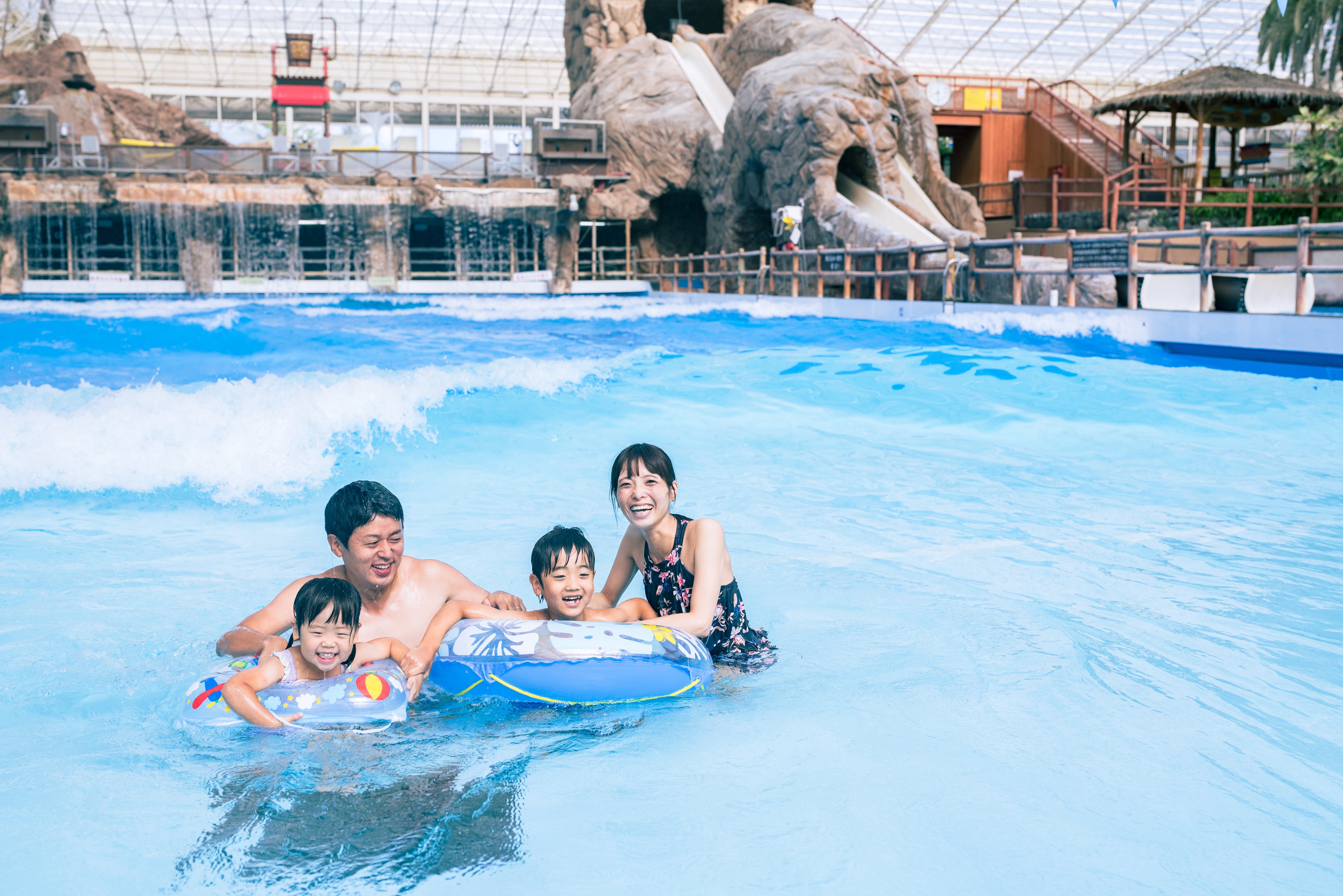 来園チケット「1Dayパス」は事前購入制となっており、3月13日(金)午前0時より販売開始いたします。季節を問わず水あそびを楽しめるドーム内のプールやウォータースライダー、大自然に囲まれた遊園地のアトラクションをご利用いただけます。