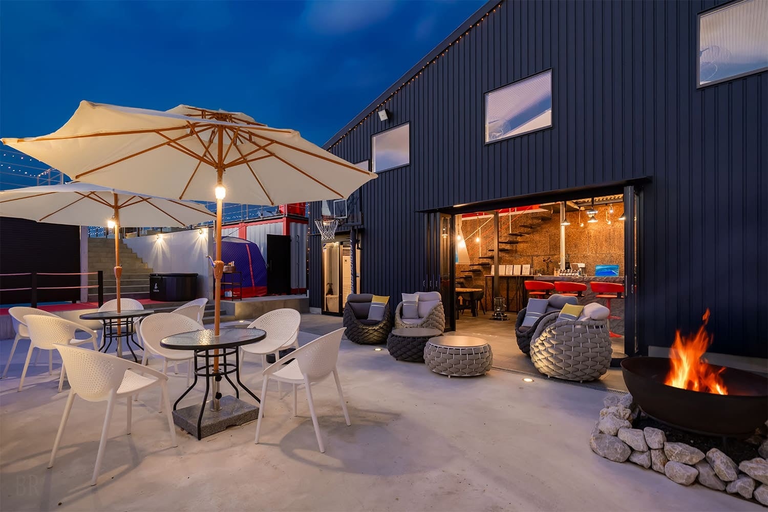 『awaJ Beach Club』のダイニングは、ただ味わうだけでなく、その空間すべてがフォトジェニック。 夜は幻想的な炎を囲む囲炉裏スタイルで、趣向を凝らした串焼き料理に舌鼓。潮風を感じるデッキでのBBQでは、淡路島の豊かな山海の幸をダイレクトに堪能する、王道のオーシャンビューBBQもお楽しみいただけます。