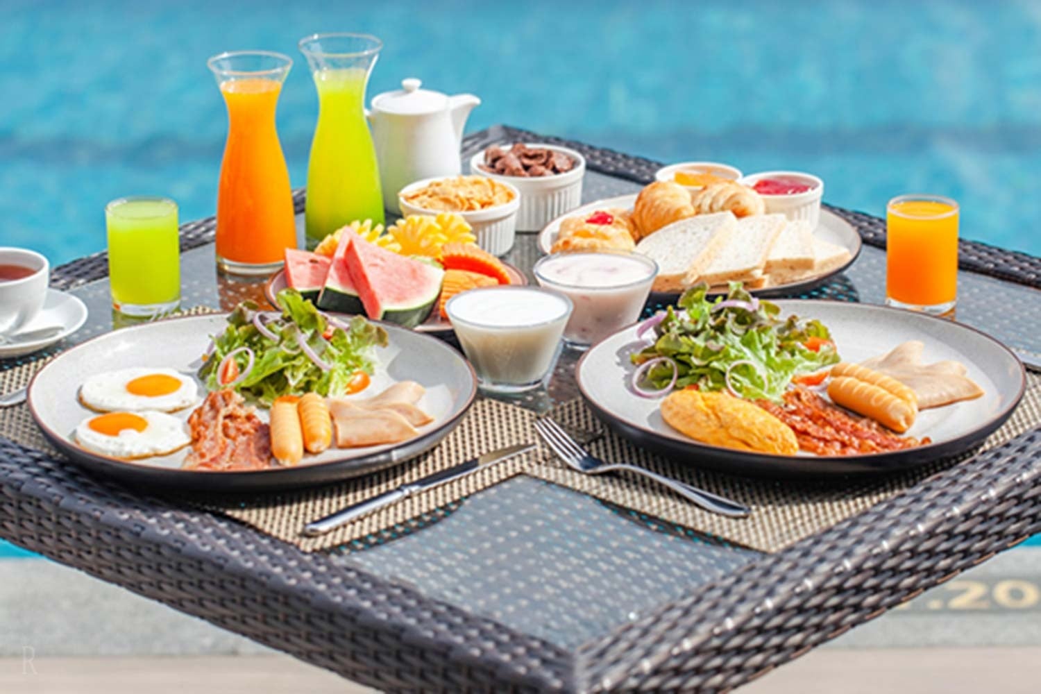 目覚めのハイライトは、透き通るプールの水面に朝食を並べる「フローティングブレックファスト」。水面に反射する光と鮮やかな料理が織りなす光景は、海外のラグジュアリーリゾートそのもの。日常を忘れさせる圧倒的な演出が、あなたの滞在をよりドラマチックに彩ります。