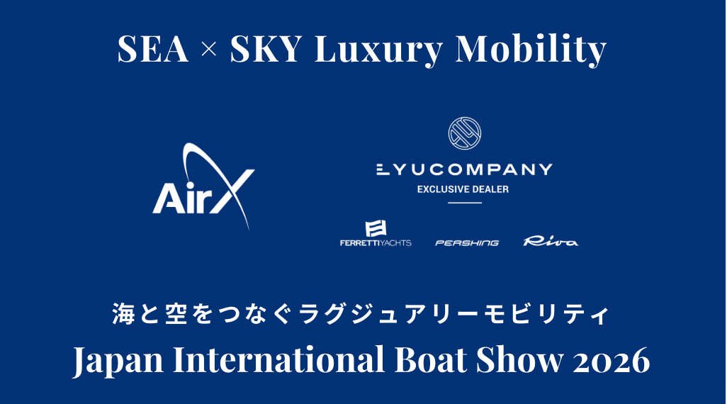 株式会社AirX(本社:東京都千代田区、代表取締役:手塚 究、以下AirX)は、2026年3月19日(木)〜22日(日)にパシフィコ横浜で開催される国内最大級のマリンイベント「ジャパンインターナショナルボートショー2026」において、ヨット関連事業を展開するLYUCOMPANYと共同出展することをお知らせいたします。