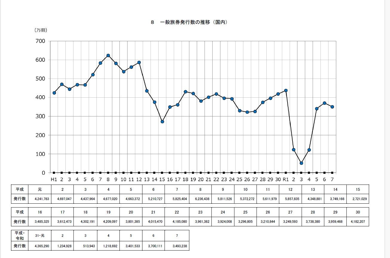 コロナ禍を境に、海外渡航(アウトバウンド)は大きく落ち込みました。外務省が公表する旅券統計でもその影響は明確で、2021〜2023年のパスポート発行数は大幅に激減。 その後は回復傾向にあるものの、依然としてピーク時にはまだ届かない低い水準にとどまっています。