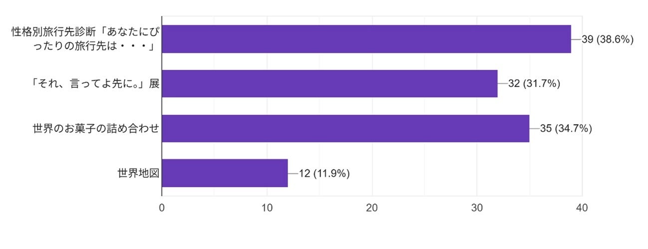 高校生に「海外に行ってみたいと思うきっかけになったコンテンツはどれですか?」と質問したところ、性格旅行先診断やパネル展示など、自分ごととして捉えられる体験型コンテンツに高い関心が寄せられたことがわかりました。