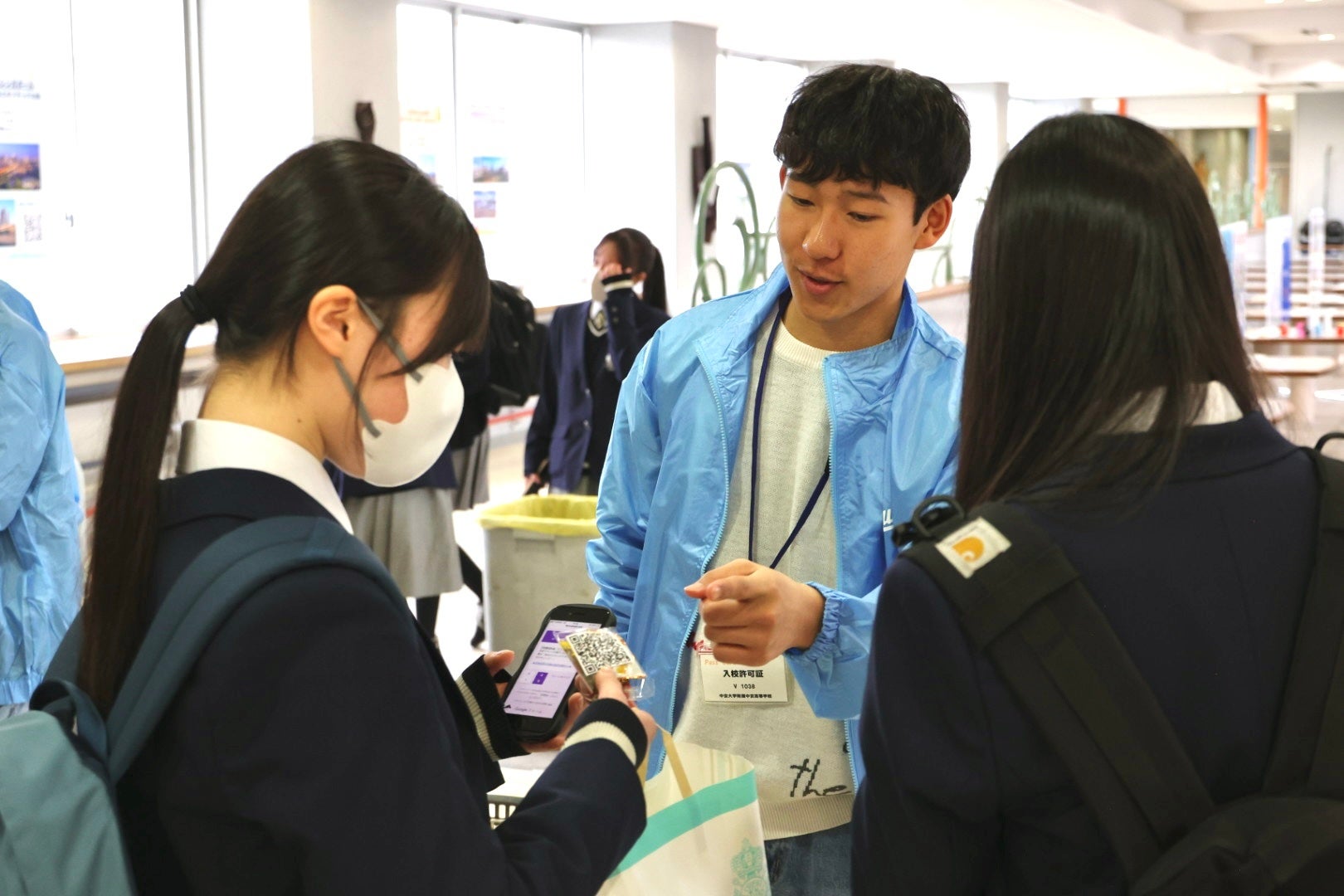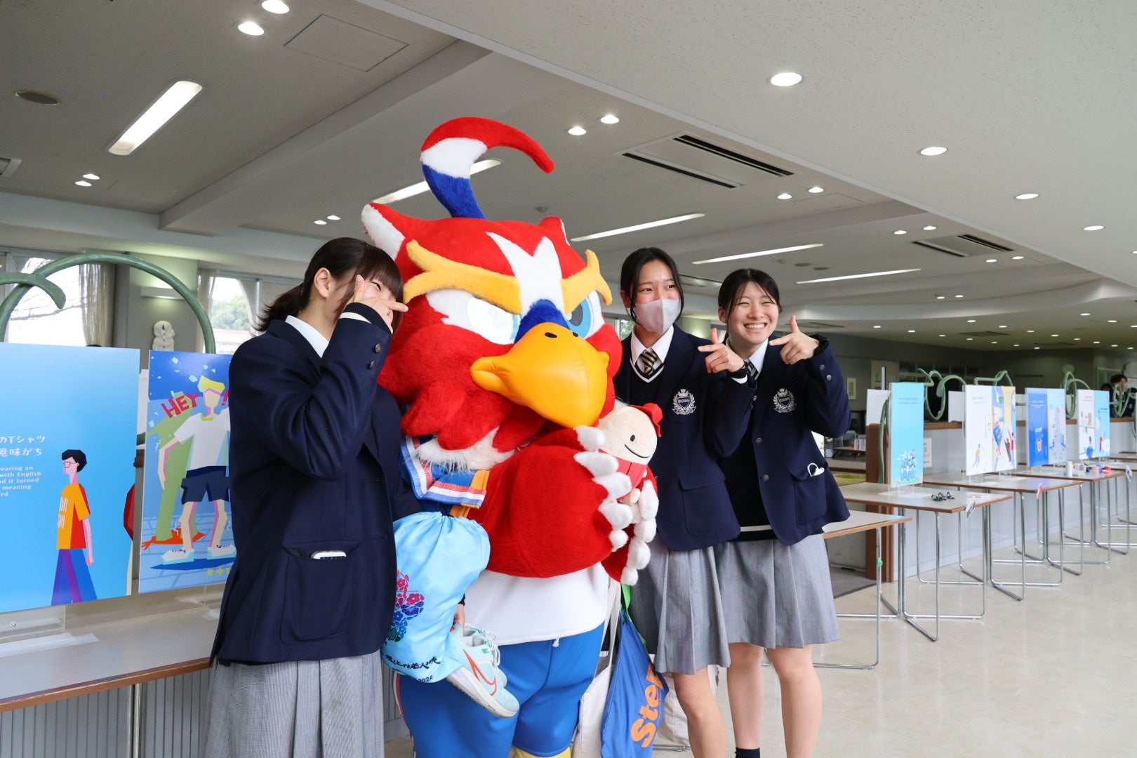 さらに、高校側のご協力で卒業前の生徒へ直接PRする機会を得て、中京大学のマスコットキャラクター「チューグル」と中京大学出身のOB学生が登場し、イベントの魅力を熱く紹介。多くの高校生が興味を持ち、実際に来場へつながりました。