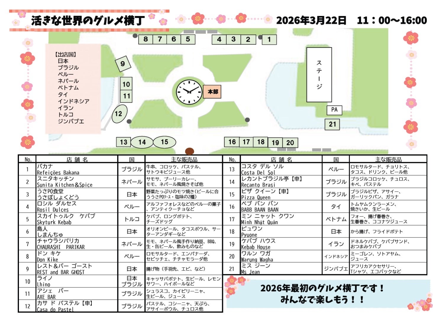 3/22開催 グルメ等出店