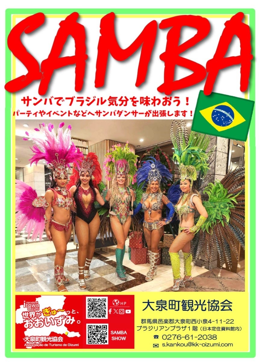 3月22日(日)午前11:00~午後4:00 @群馬県大泉町いずみ緑道・花の広場で開催!! ステージでは日本太鼓から始まり、ブラジルサンバで締めくくります!!