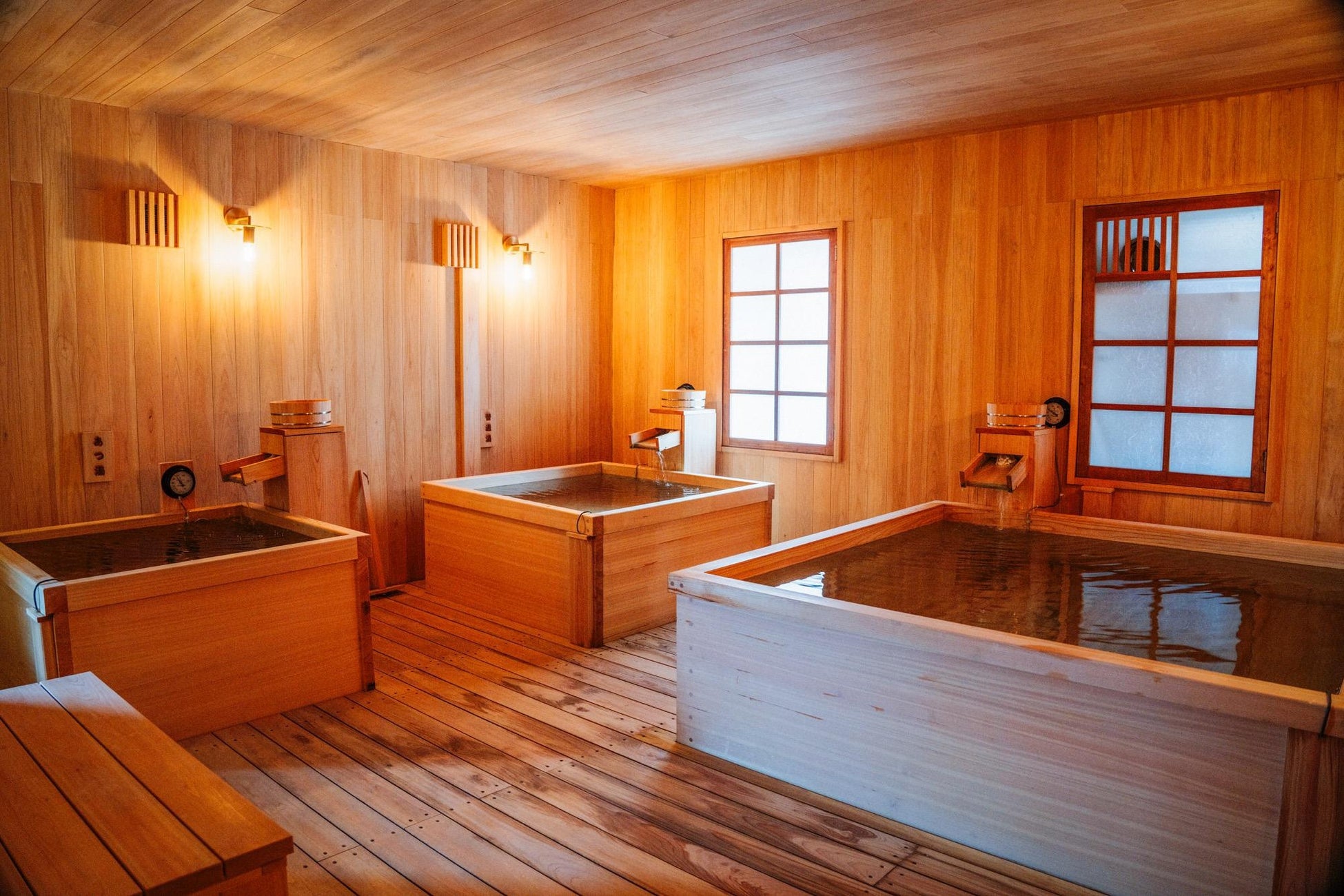 全面ヒノキで、熱湯、水風呂、サウナの整い空間へ