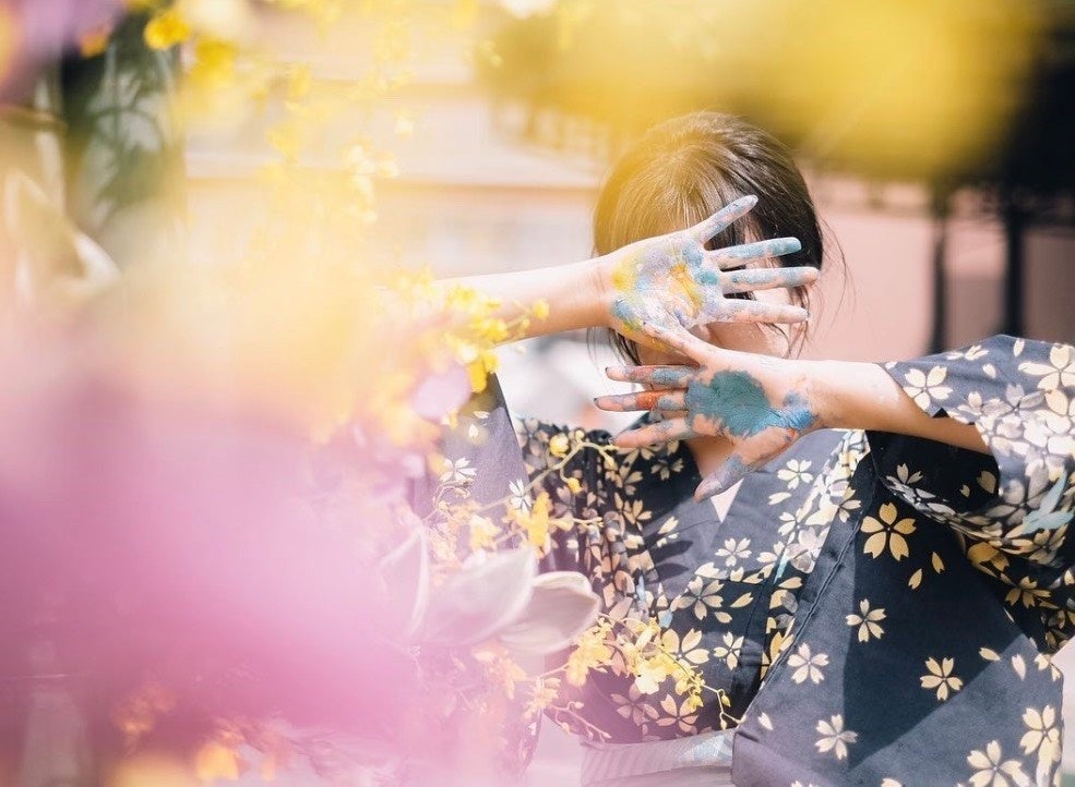 おさめしらすは2002年生まれ、大分県別府市出身。主にアクリルガッシュを用いて制作し、力強くも繊細な色彩とメッセージ性のある作品を発表しています。特筆すべきはライブペイントのスタイル。筆とともに自らの手も用いたダイナミックな表現で描き上げます。それは、冷たくのしかかる世の中への“下剋上”としての表現であり、身体そのものを通した体現でもあります。