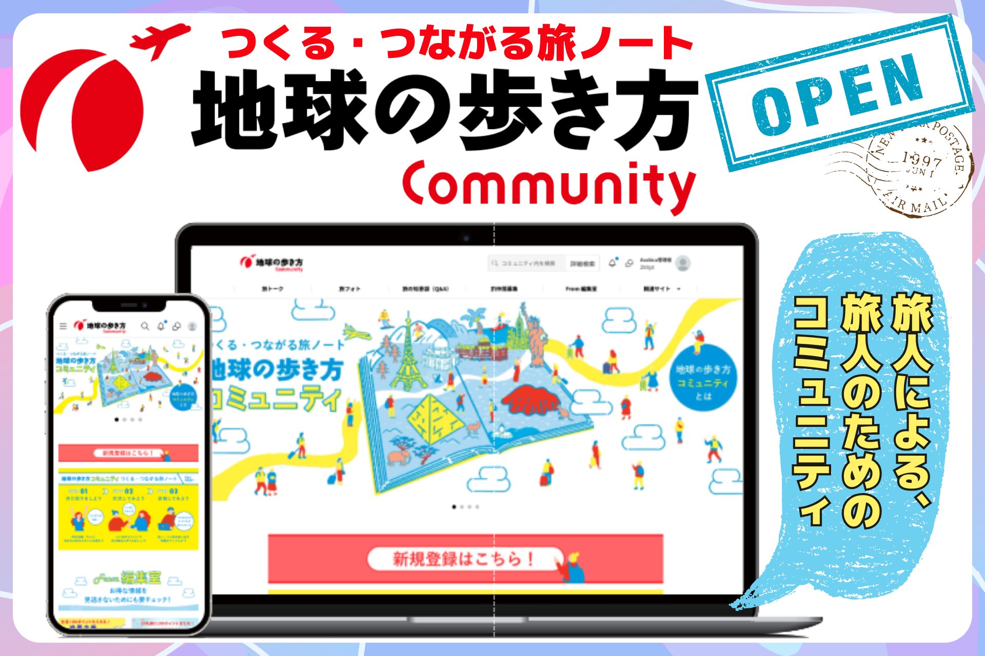 このたびオープンした「つくる・つながる旅ノート 地球の歩き方コミュニティ」も同様に、集う旅人たちと地球の歩き方が、旅や世界にまつわる情報を共有できる「旅ノート」のような存在を目指します。またコミュニティを通じて、新しい旅先や仲間と出会い、世界をより身近に感じていただける場となれば幸いです。