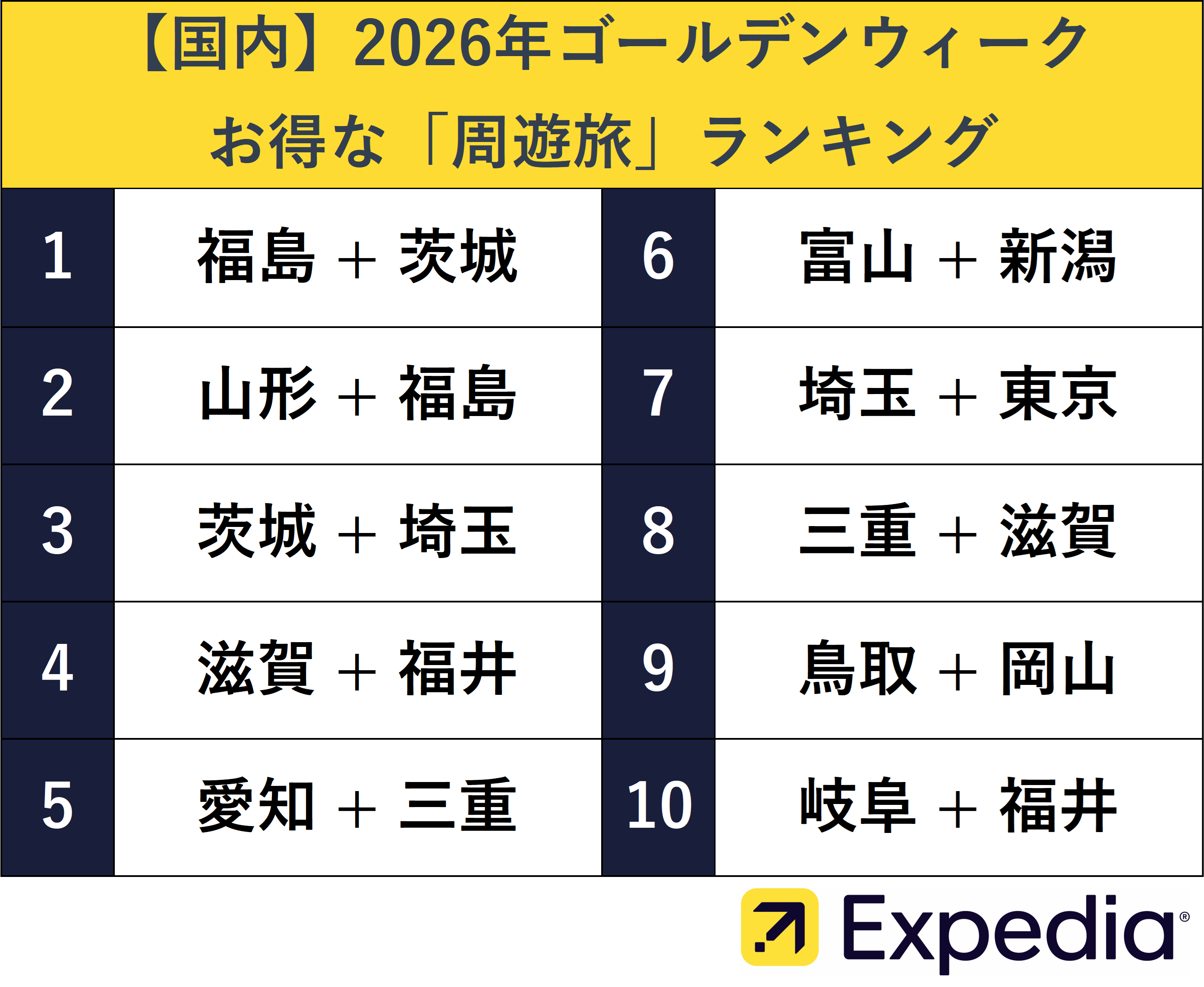 世界の大手総合旅行ブランドの一つであるエクスペディアは、2026年のゴールデンウィークにおける「【海外】穴場コスパ旅行先ランキング」「【国内】お得な『周遊旅』ランキング」に加え、「混雑日やお得な出発日予想」を発表します。