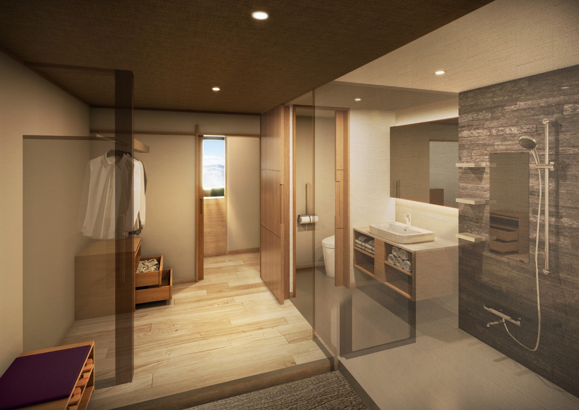 これは近年の宿泊ニーズの多様化や滞在スタイルの変化を背景に、より快適で洗練された宿泊体験を提供することを目的とした改装となります。本改装により、「西の館スタンダード和室」は新たに「西の館 和モダンツイン(36㎡)アルプスビュー」として生まれ変わり、正面に北アルプスを望む眺望を最大限に活かしつつ、和の落ち着きとモダンな快適性を兼ね備えた空間設計とすることで、幅広いお客様のご利用に対応可能な客室となります。