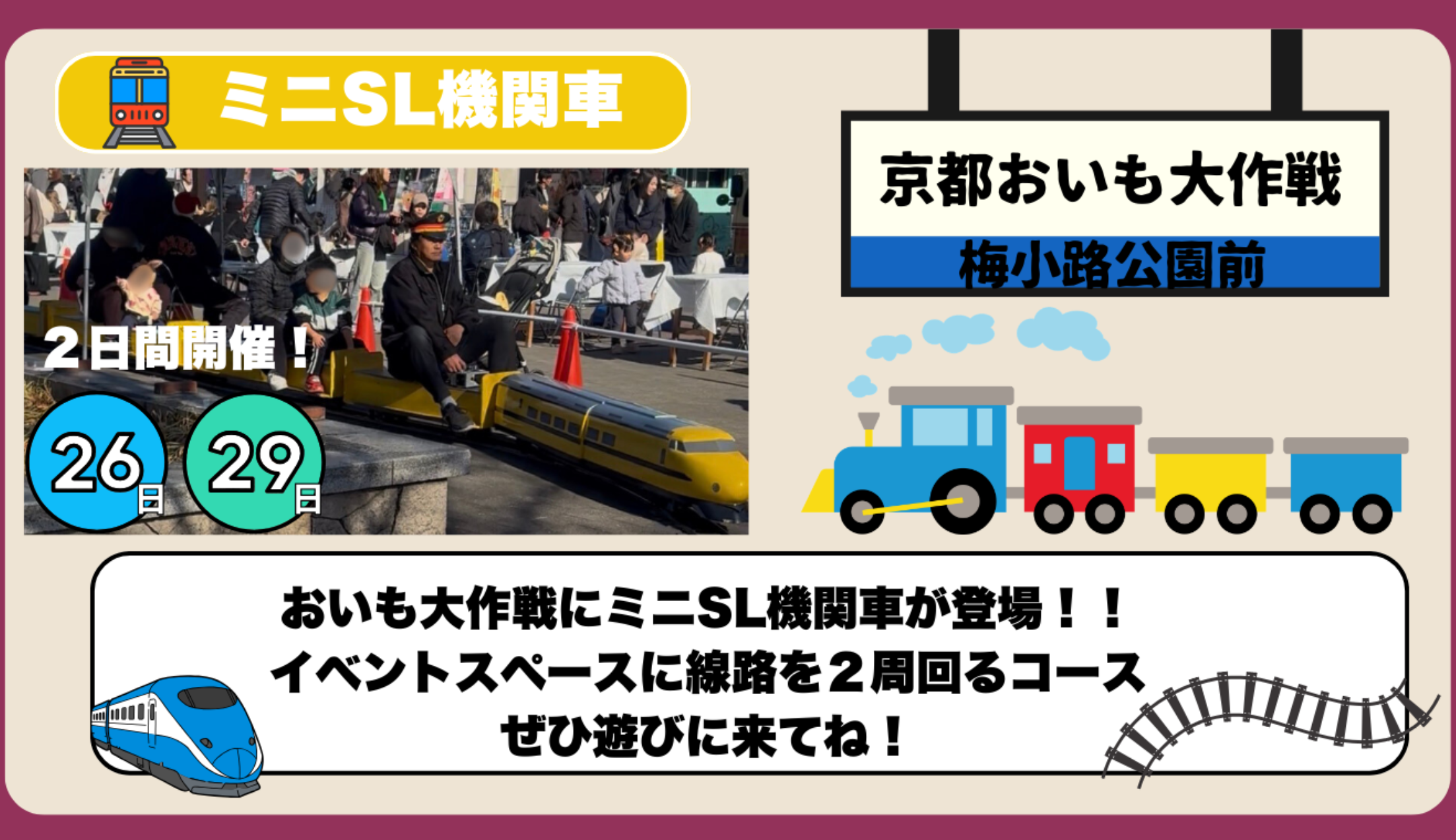 会場では鉄道グッズ販売や鉄道アイドルステージなど、鉄道ファンも楽しめるコンテンツを展開。京都鉄道博物館にも近い梅小路エリアならではの企画として、幅広い世代が楽しめる内容となっています