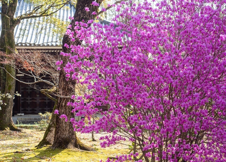 千年以上の歴史を刻む世界遺産・仁和寺にて開催される『御室花まつり』は、境内を優美に彩る御 室桜、枝垂れ桜、陽光桜、八重桜といった桜を中心に、躑躅(つつじ)、シャクナゲ、青もみじの観賞を堪能できます。特に代表的な御室桜は、背丈が低く、目線の高さで花を愛でることができる稀有な桜として知られ、京都でも遅咲きとされております。満開時には桜の雲海を愉しめます。国宝・金堂や重要文化財・五重塔・観音堂の宗教建築群と桜が織りなす春景色は、華やぎのなかに凛とした趣を感じさせます。