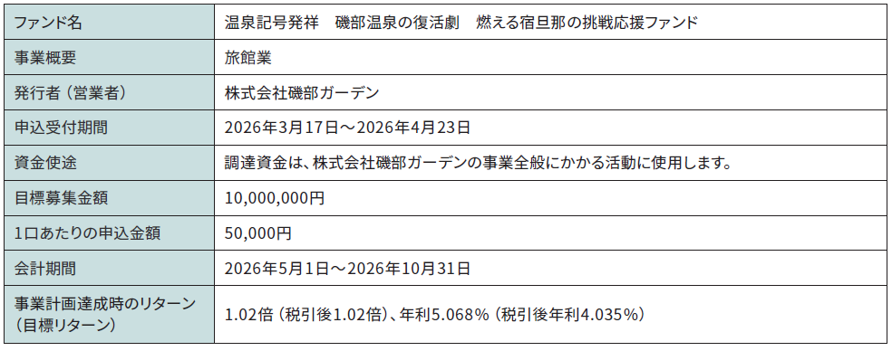 投資型クラウドファンディング募集概要