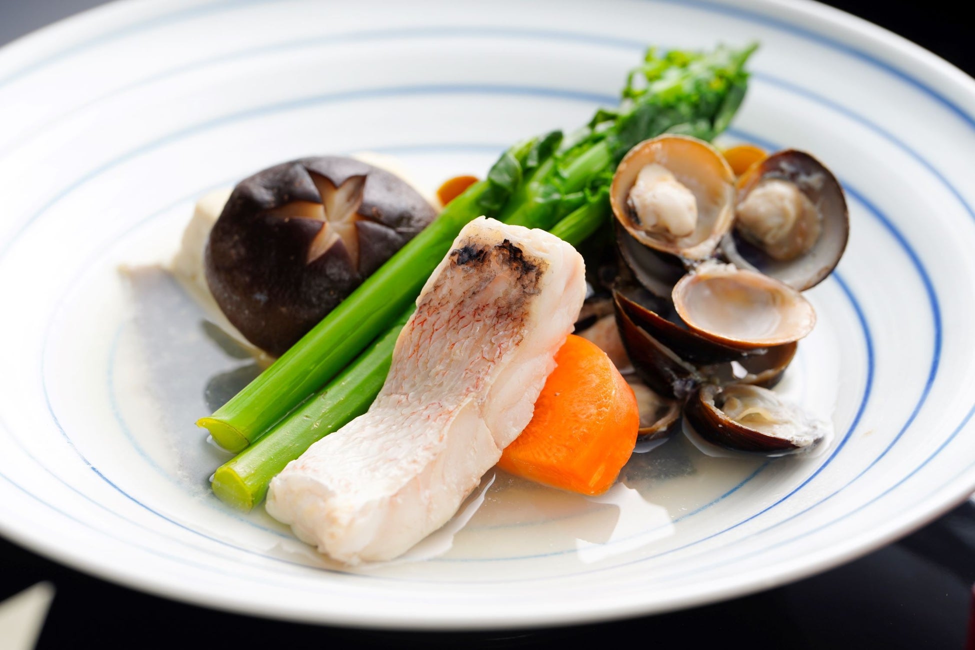 島根県産甘鯛と宍道湖産しじみの酒蒸し