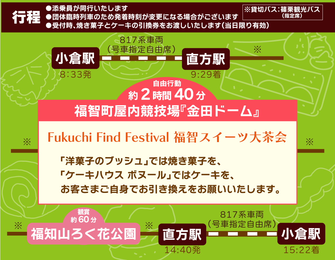 (1)ツアー名称:6年ぶりの開催!小倉駅発着 専用列車&バスで行く!福智スイーツ大茶会