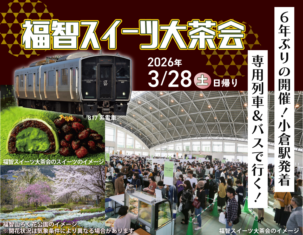 九州旅客鉄道株式会社(JR九州)は、6年ぶりに復活する春のイベント「福智スイーツ大茶会」と、花の名所として知られる「福智山ろく花公園」を巡る日帰りツアーを発売中です。