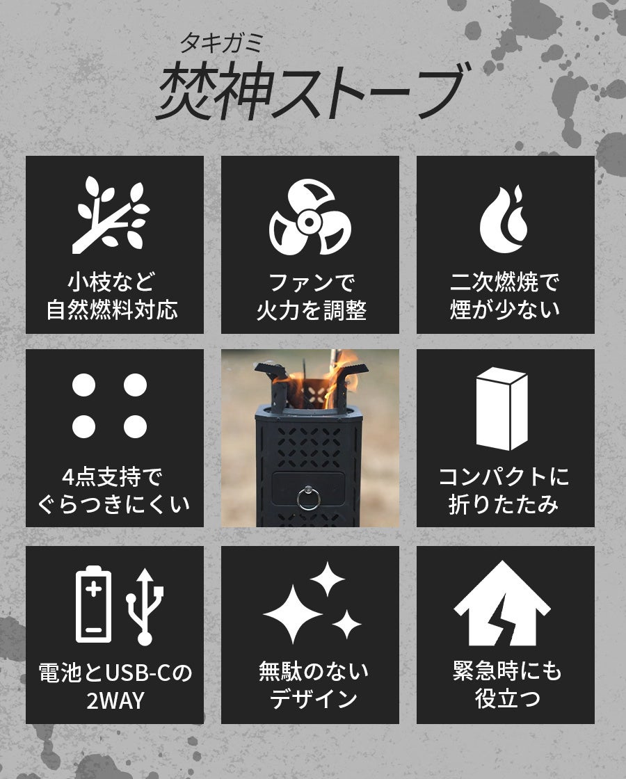 自然燃料×送風ファンの力 短時間に高火力を実現【焚神(タキガミ)ストーブ】