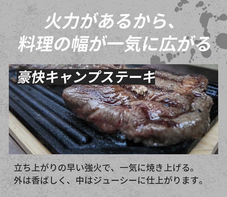 火力不足を諦めていたキャンパーへ。独自のVortex炎が燃焼を加速、少ない薪で豪快な高火力。煙を抑え、理想のキャンプ飯を実現!安定4点支持&折り畳み収納で持ち運びも快適な高性能ストーブが登場。