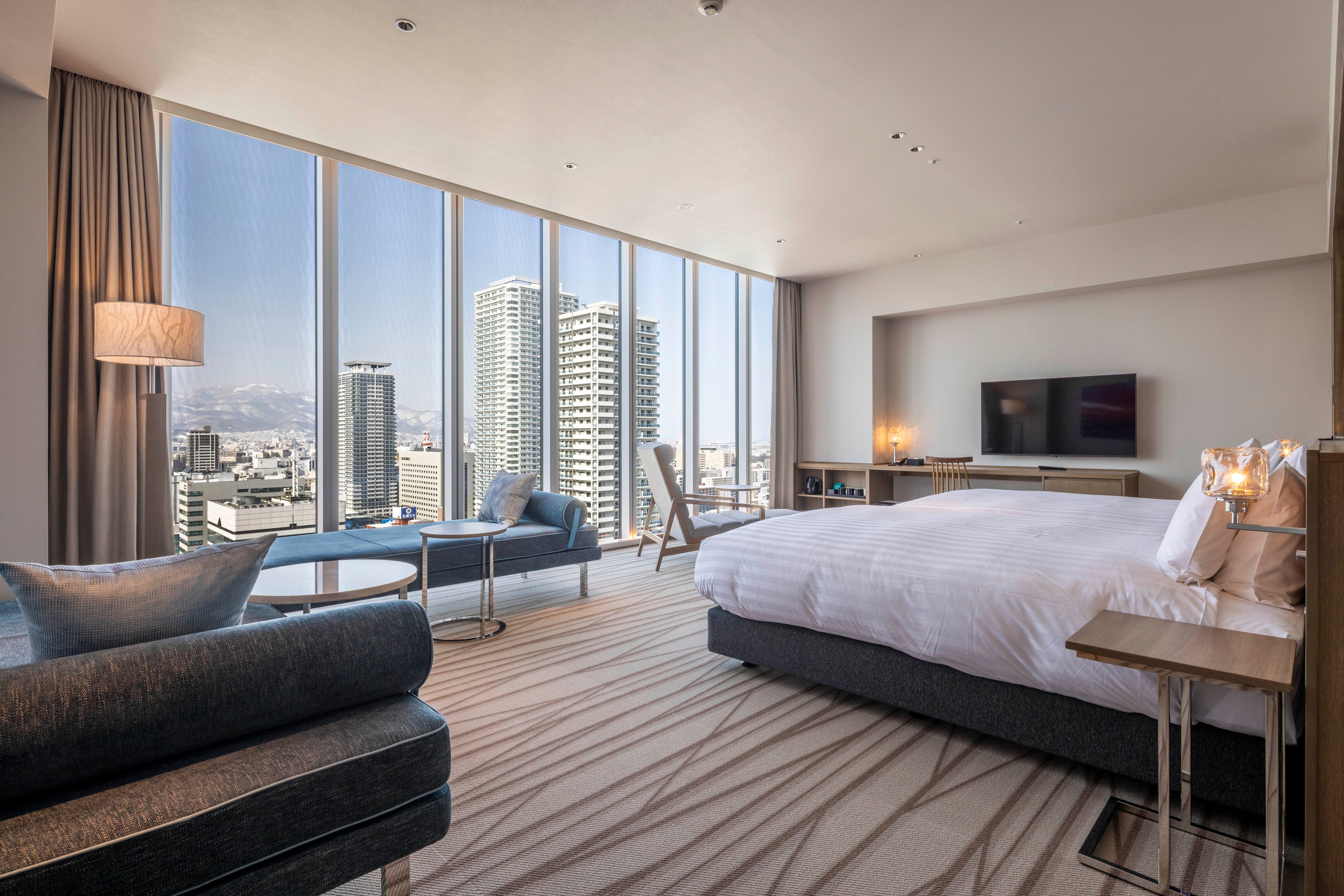 空と一体化するガラスキューブの外観と、自然素材を活かした温かみのあるインテリアのデザイナーズホテル。高層階にある半露天風呂付温泉スパ&サウナで癒され、地上約100mのレストランからは札幌の美しい夜景を一望できます。札幌の中心地から北海道の“今”を感じる、旅の拠点にふさわしい贅沢なホテルステイをお楽しみください。