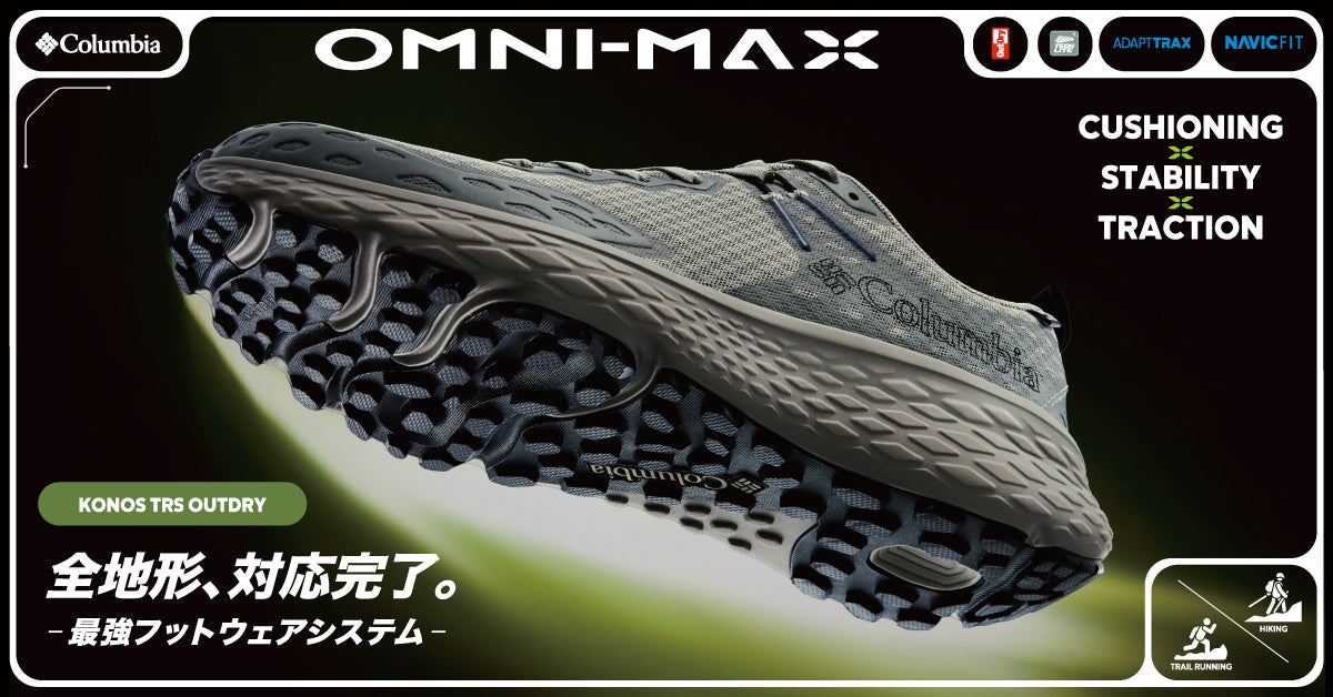 コロンビア独自のフットウェアシステム〈OMNI-MAX(オムニマックス)〉を搭載したマルチパフォーマンスモデルが登場。スピードトレイルからハイク、そして街まで。フィールドの境界を越えて活躍する3モデルがラインナップします。
