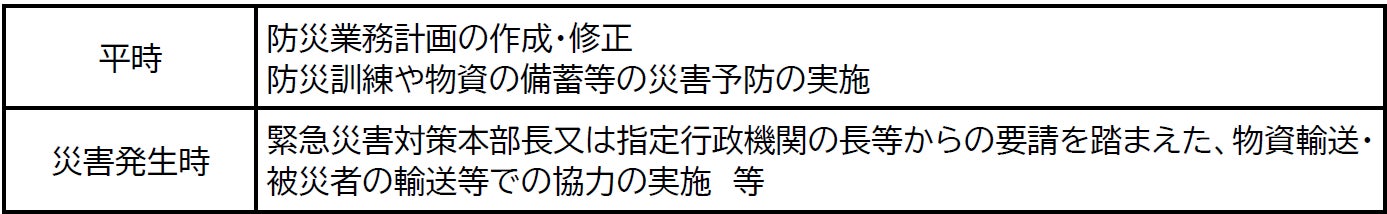 (*1) 「指定公共機関」とは、災害対策基本法に基づき、公共的機関及び公益的事業を営む法人の中から内閣総理大臣が指定するものです。指定された法人は、防災業務計画の策定をはじめとして、災害予防・応急対策・復旧などにおいて重要な役割を果たすことが求められます。