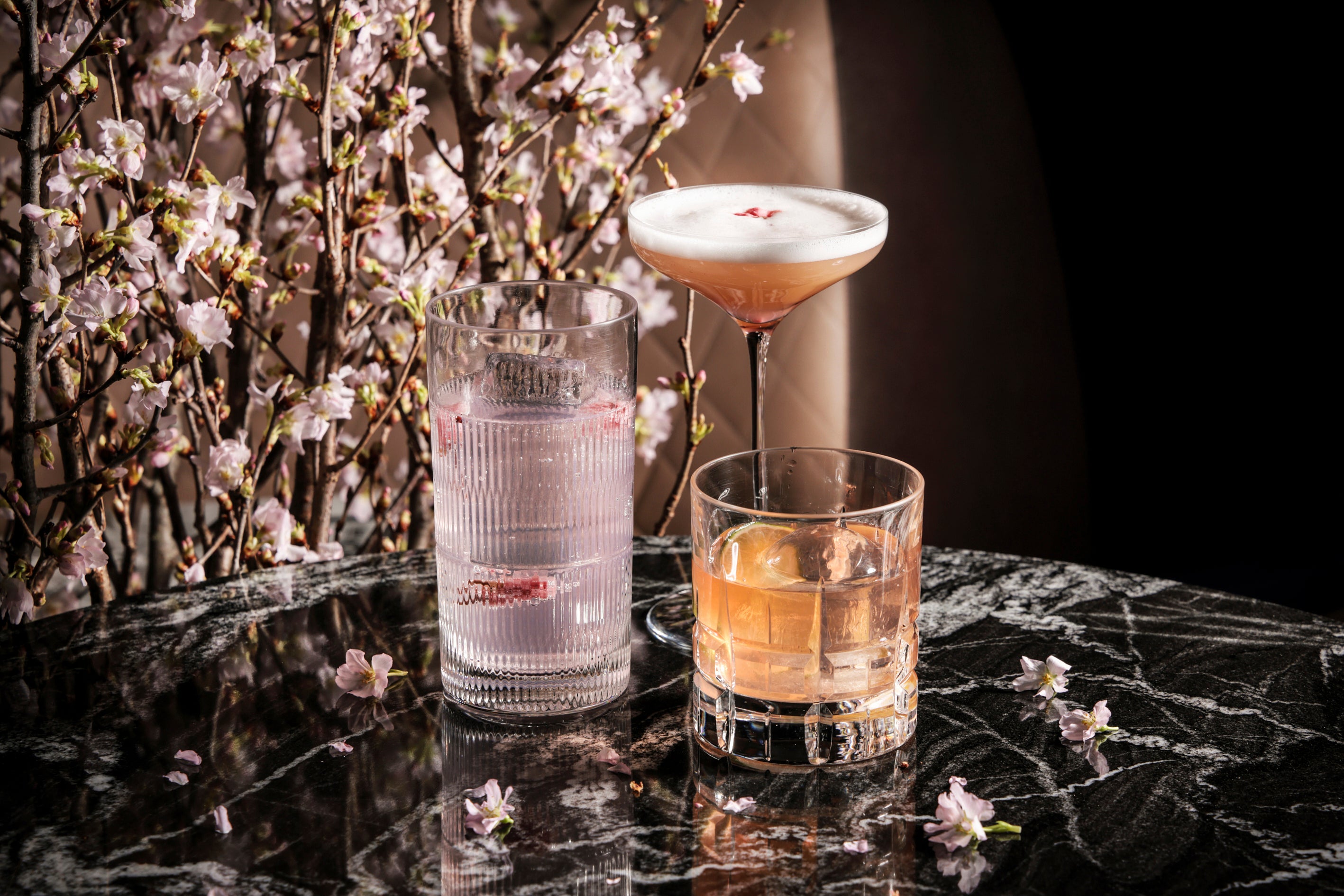 桜が舞う季節、セントレジスバーでは3種の桜カクテルが春の情景を描きます。