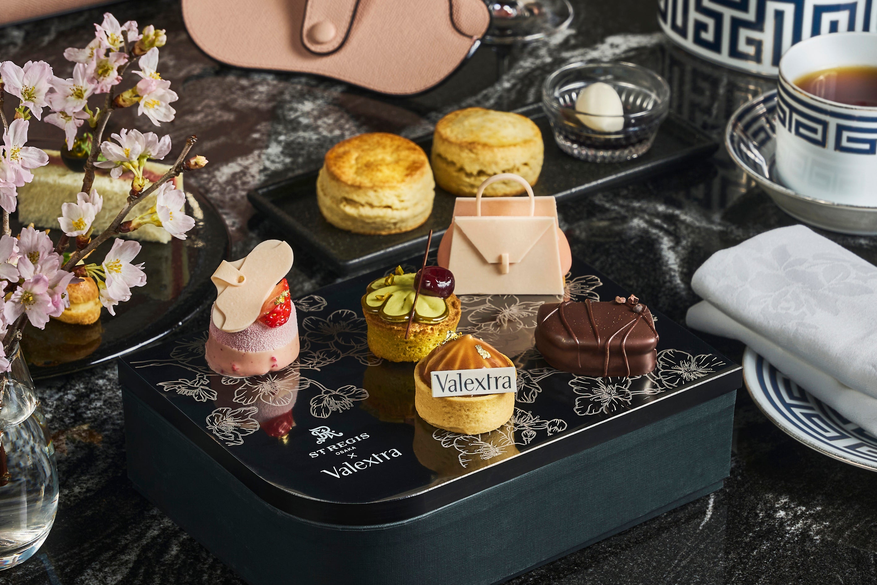 イタリアのラグジュアリーレザーブランド「ヴァレクストラ」とのコラボレーションによるアフタヌーンティーも、4月は桜のエッセンスを纏い春の装いに。ブランドのアイコンバッグ「イジィデ」から着想を得た優美な世界観に、桜の花や苺を取り入れたスイーツ、春色のセイヴォリーが調和します。洗練されたプレゼンテーションとともに、2つのブランドの美学が響き合う特別な午後の時間をご堪能ください。