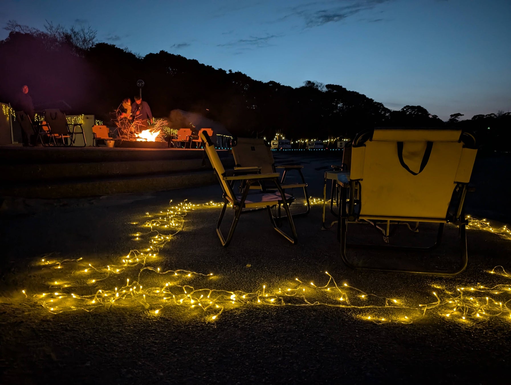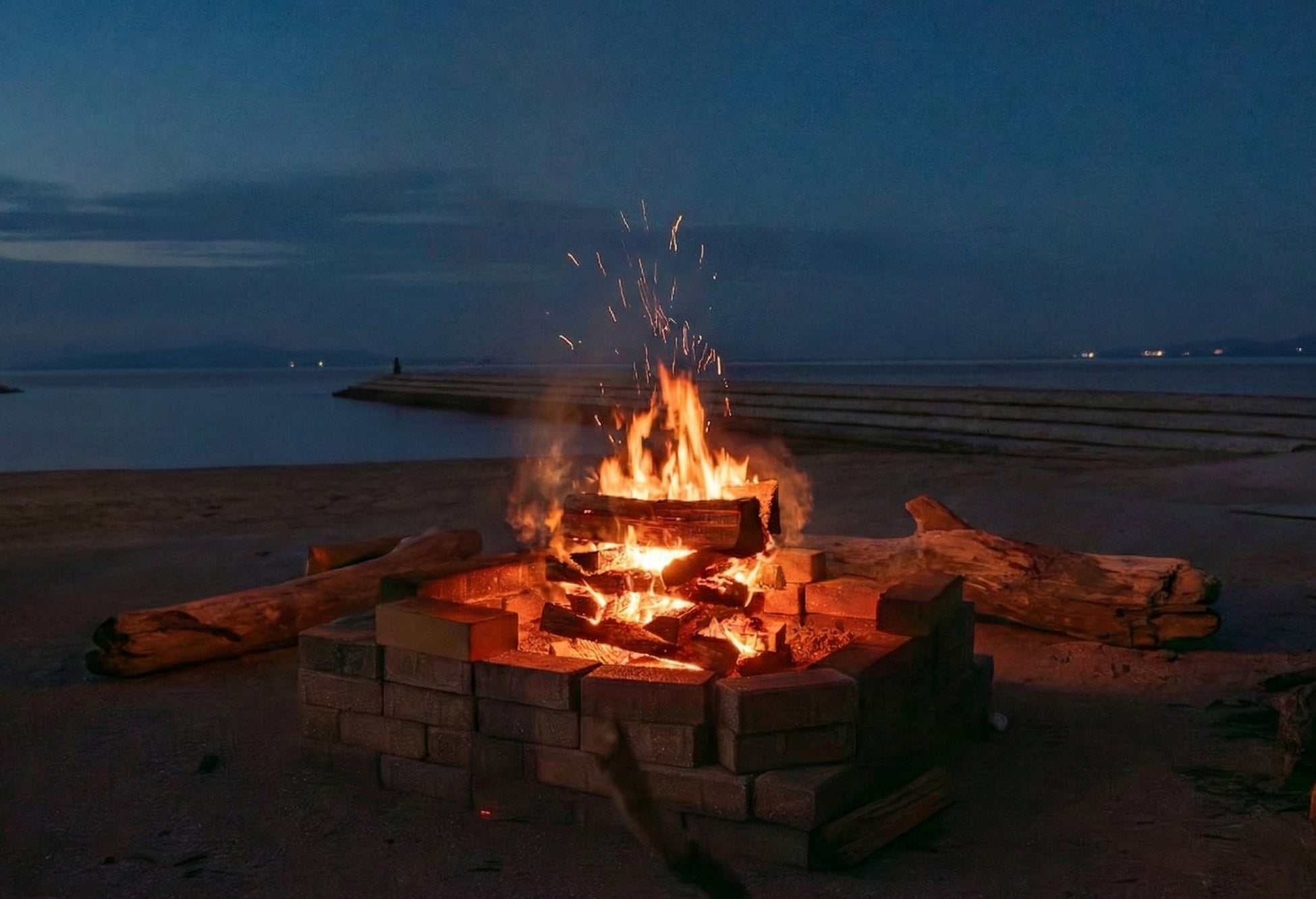 ③ 夜の海を癒しに変える「キャンプファイヤー」