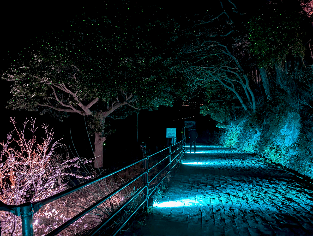 菜の花ライトアップ会場から長崎鼻ビーチリゾートまでの道のりを彩るライトアップ。