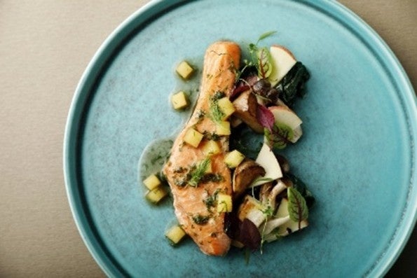 信州サーモンのミキュイ りんごと軽井沢シードルのソース