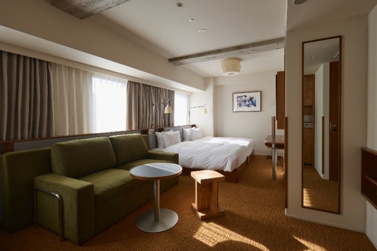 客室は「Essential Comfort」を軸に、“暮らせる機能”と“休める快適性”を両立。使いやすい収納設計や落ち着いた照明・カラー計画で上質さを整え、リビング&ダイニング付きの客室タイプも備えることで、多様な中長期滞在ニーズに応えます。
