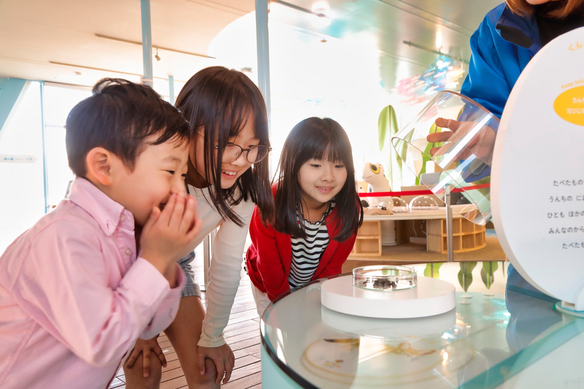 生き物になった気分でかくれんぼする視覚や身体を使った体験ゾーン、いろいろな生き物の鳴き声や音に耳をすませる聴覚を使った体験ゾーン、展示生物のうんちをみて、においをかいで観察する嗅覚を使った体験ゾーンなど、生き物たちの「いのちのアイデア」を6つのゾーンで体験できます。飼育員たちが考案した幼い子ども向けの体験コーナーを、ご家族そろってお楽しみいただけます。