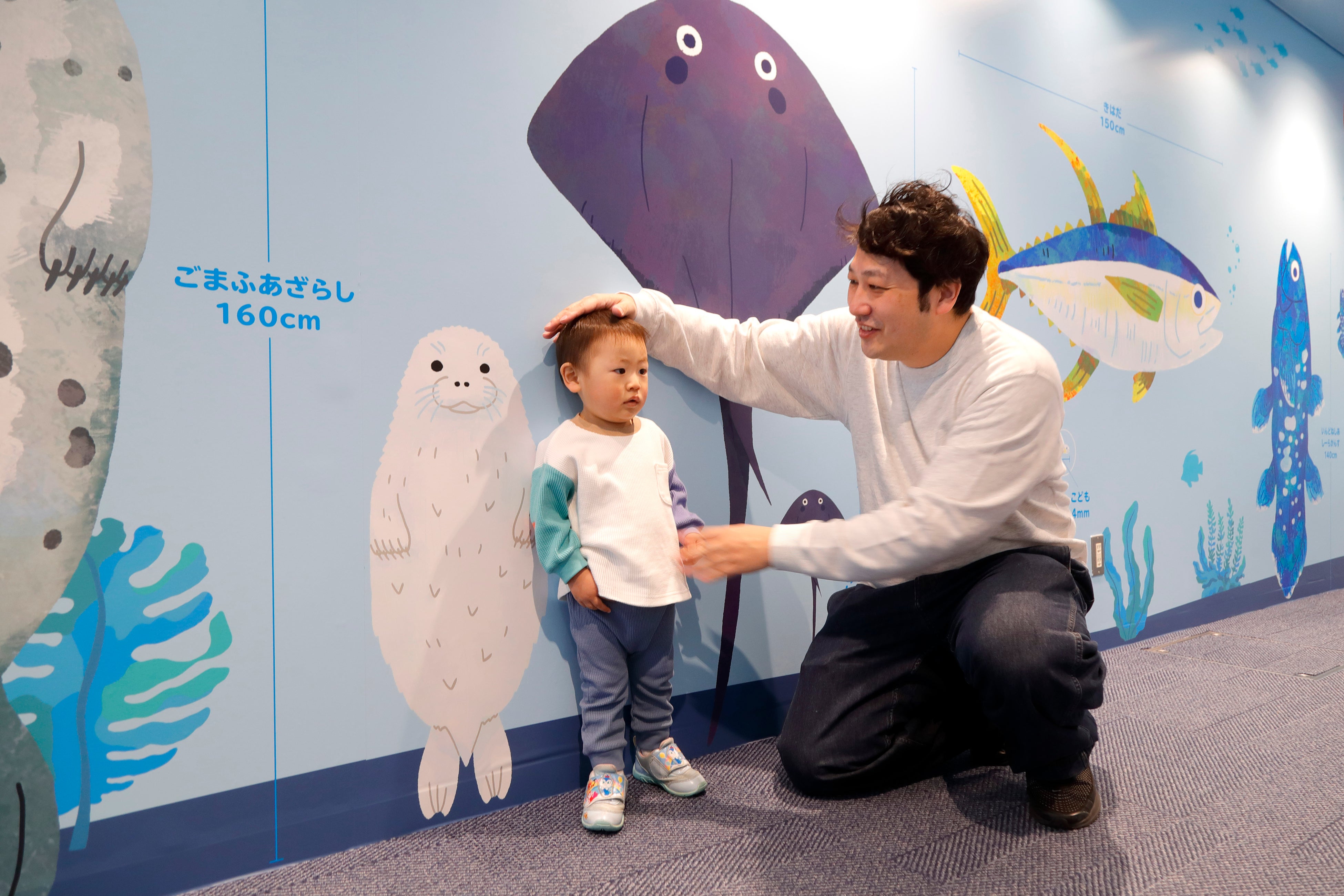 室内のため、天候を気にせずゆったりと過ごせるのが特徴です。自身も母親や父親である飼育員たちが中心となって進めた本プロジェクトでは、水族館ならではの授乳・おむつ替えスペースの設置や、キャプション解説へのひらがな使用、子どもの目線の高さにあわせた展示づくりなど、子育ての気づきから生まれたきめ細やかで赤ちゃんフレンドリーな設計にもこだわりました。
