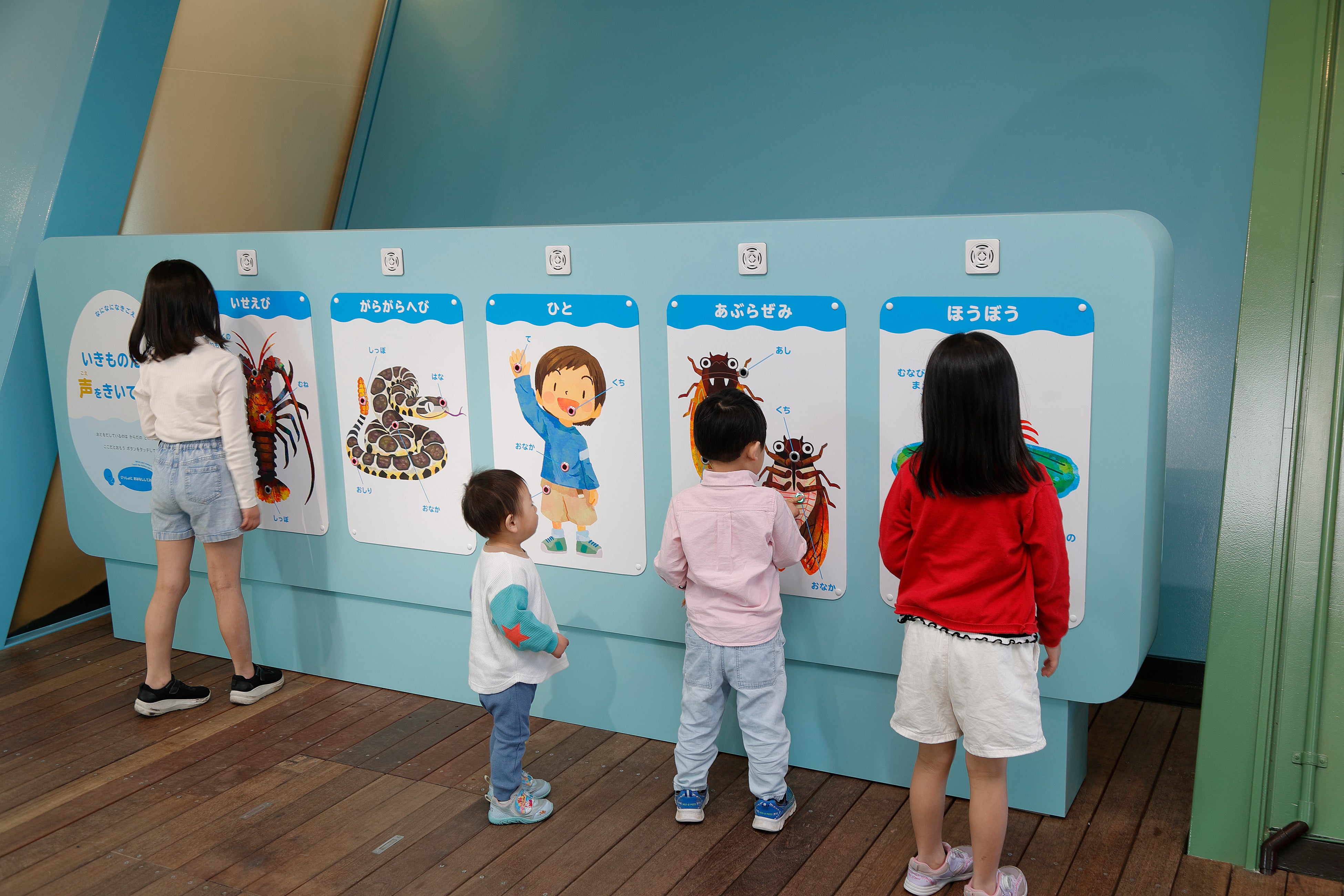 生き物たちは色々な音を出しています。どんな声で、どんな風になくのかな?生き物たちが出す、意外で面白い「音」のひみつを体験できるゾーンです。なかには飼育員たちが集めたアクアマリンふくしまの生き物の音もあります。