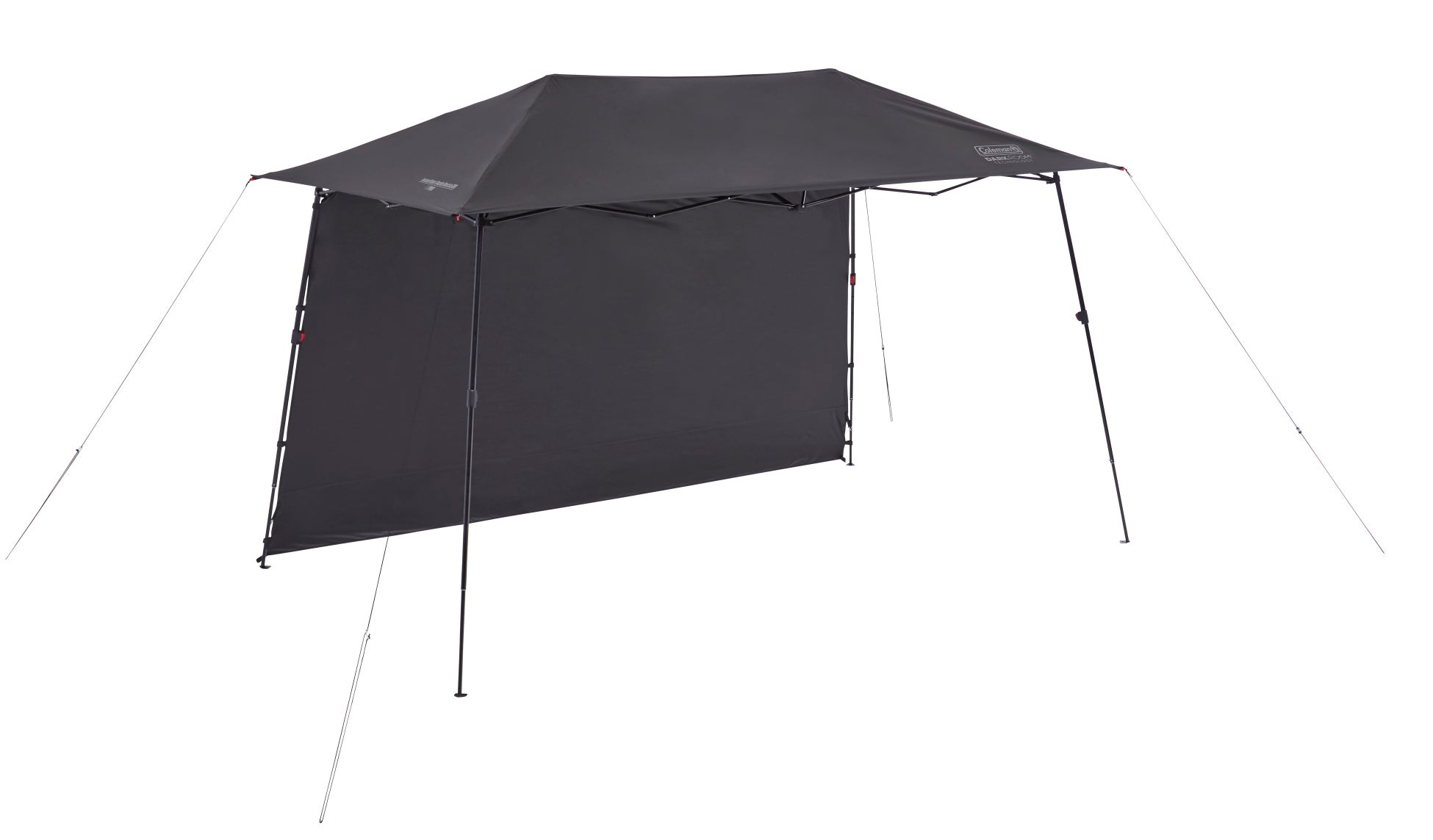 2026年の新作で、ワンタッチシステムによる素早い設営/撤収が可能な、約203×360cmという横長のひさしが特長のシェードです。遮光性の高い生地を使用し、日光による影響を受けにくい「ダークルームテクノロジー」を採用しており、夏場でも温度上昇を抑えて快適な空間をつくることができます。
