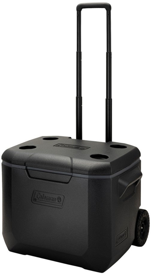 保冷力は約3日(※1)で、約56Lの大容量クーラーです。500mlペットボトルなら24本、1.5Lペットボトルなら13本、2Lペットボトルなら12本収納可能です(※2)。底面にはドレイン(水抜き栓)があるので、食材やドリンクを氷水に漬けて冷やした後も、簡単に水抜きができます。また、トップ部分にはカップホルダーが付いているためサイドテーブルとしても使用できます。伸縮性のあるハンドルとホイールで重い荷物も楽々移動ができるので、チームスポーツに最適なハードクーラーとなっています。