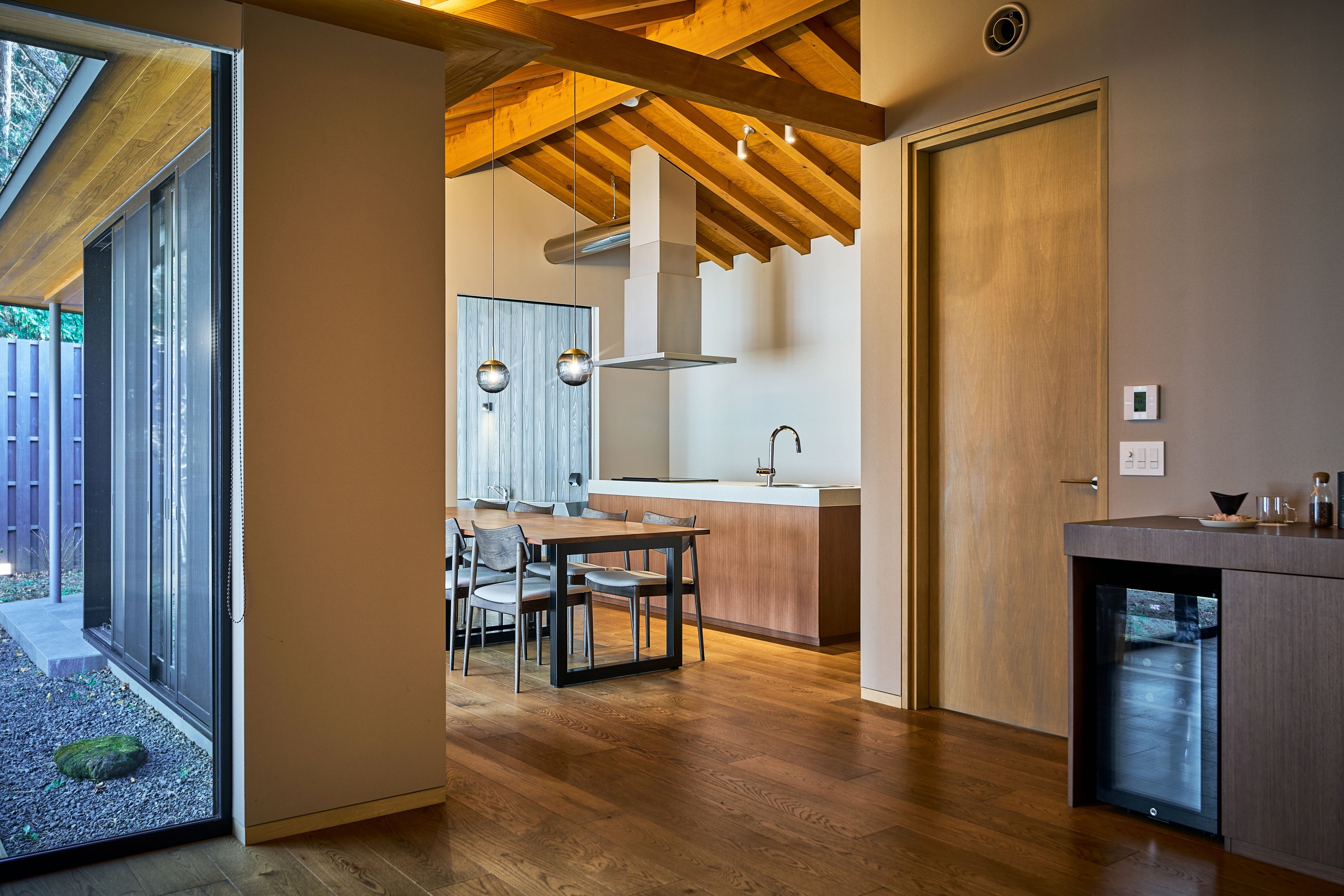 森の中に佇む印象的なハーフドーム型の建物、WOODSIDE dining。大きなガラス壁面には四季折々の自然の色彩が映し出され、まるで風景画のような美しい時間が広がります。ディナーでは薪火の力を生かした「薪焼イノベーティブ」を提供。薪の種類や温度を巧みに操り、旬の食材の持ち味を最大限に引き出します。遠赤外線効果で外は香ばしく、中はジューシーに仕上がり、薪のほのかな香りが余韻を深めます。料理のインスピレーションは和食をはじめとした多国籍なエッセンス。「出汁」「発酵」「スパイス」を巧みに組み合わせ、新たな味わいを創出します。さらに、料理との相性を考え抜いた厳選ワインをセレクト。薪火の豊かな風味とワインが織りなすハーモニーを、五感でじっくりとご堪能ください。