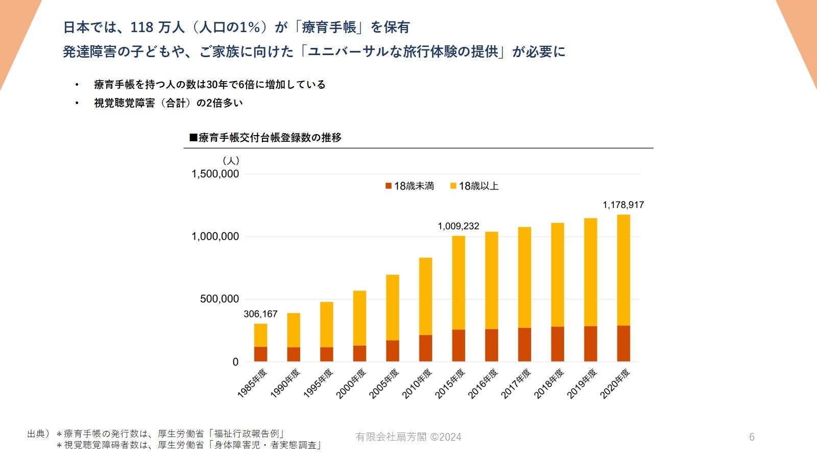 日本では子どもを含む約118万人が療育手帳を保有しており、毎年増加傾向にある
