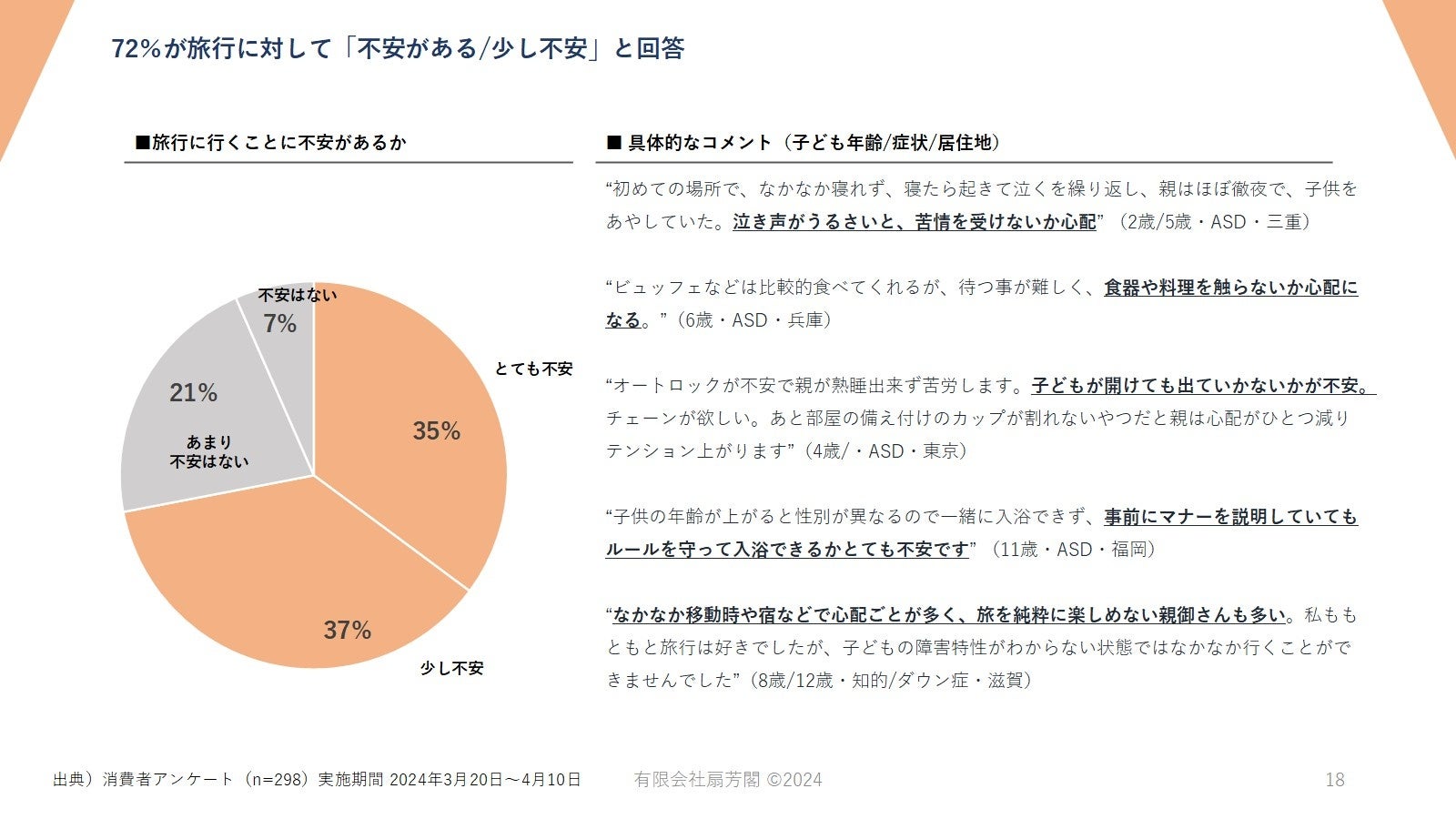 72%の保護者が「障害のある子どもとの旅行に不安がある」と回答し、旅行をためらう要因となっている