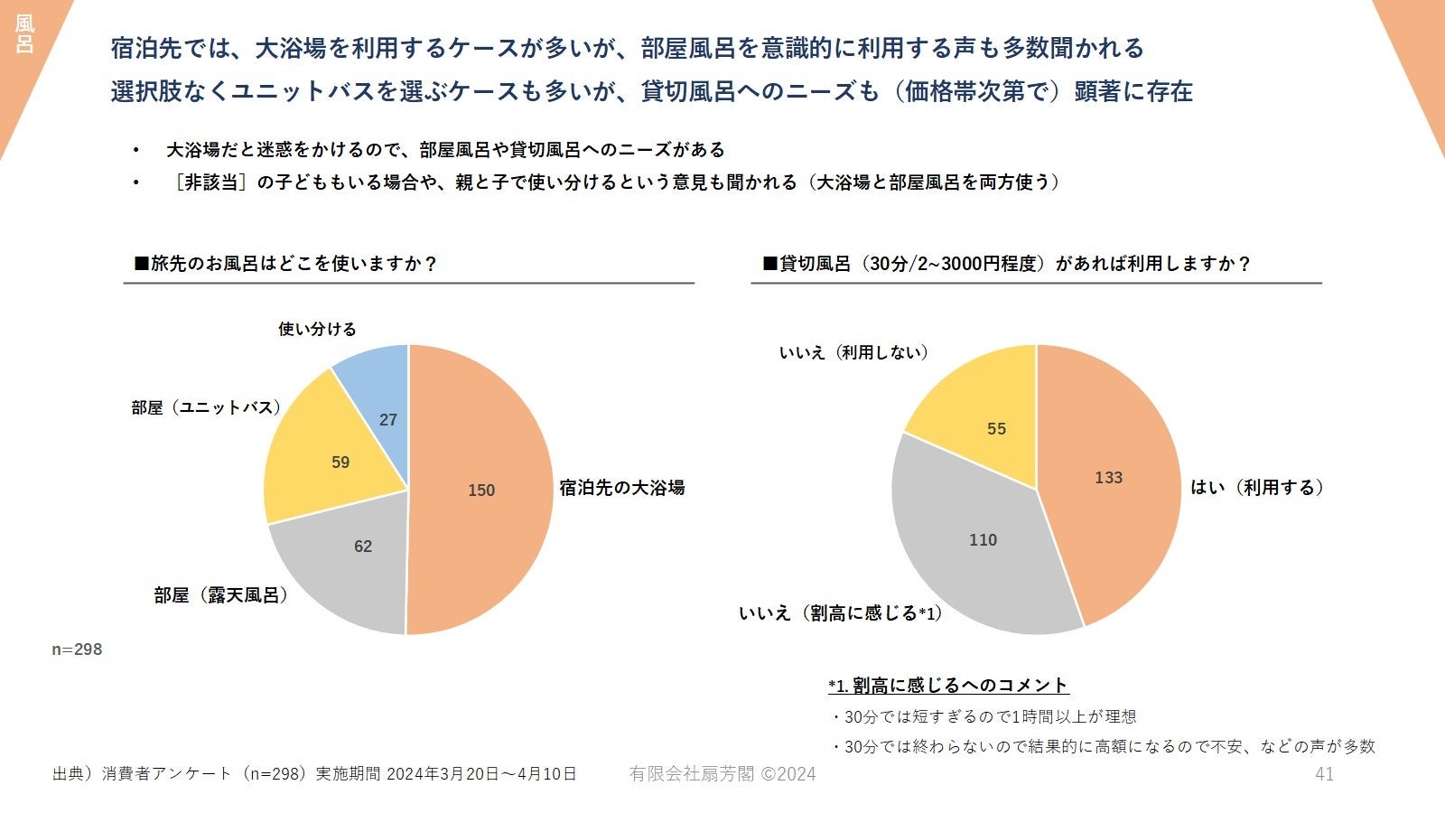 宿泊先では、部屋風呂や貸切風呂へのニーズがある。